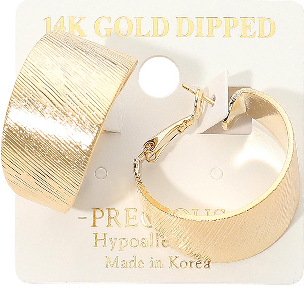 Also available in white gold dipped, these wide hoop earrings feature a textured design that adds dimension and shine. Lightweight and stylish, they’re perfect for making a bold yet elegant statement with any outfit.