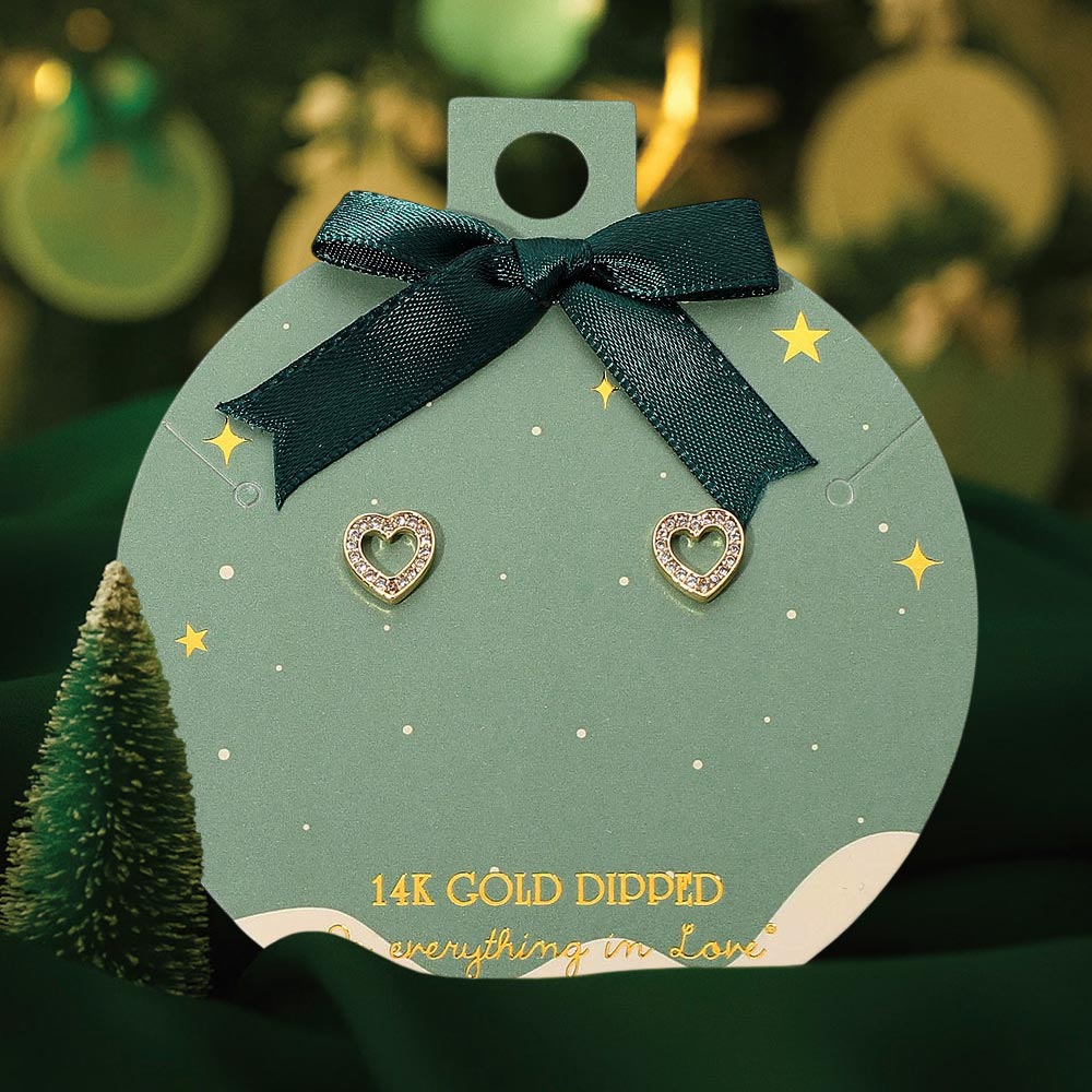 These open circle stud earrings feature a smooth 14K gold–dipped finish with a row of sparkling stones for added shine. Lightweight and easy to wear, they offer a simple yet standout look that pairs well with any style.