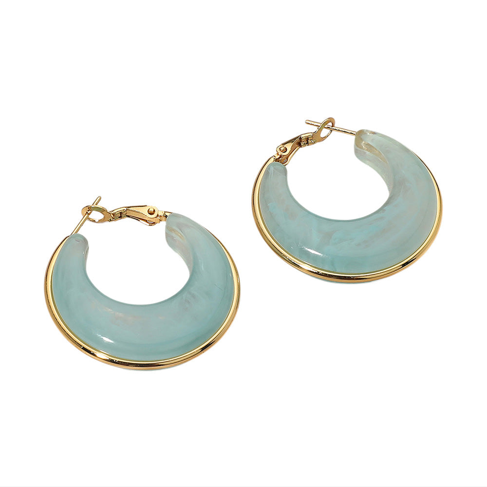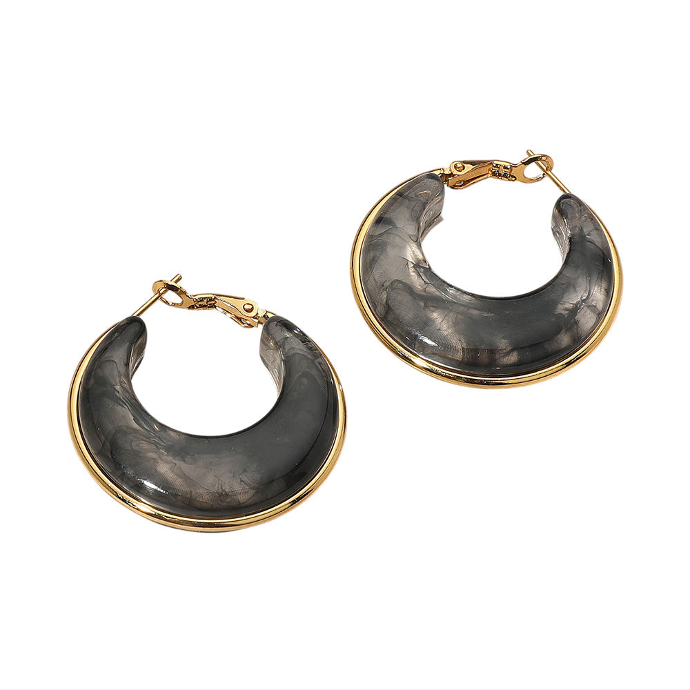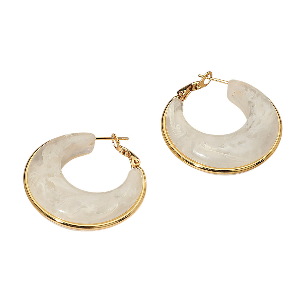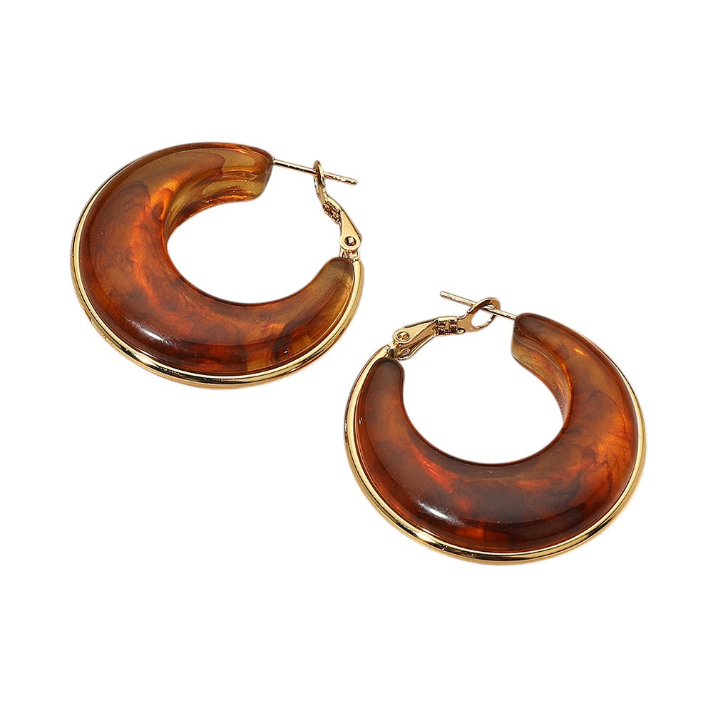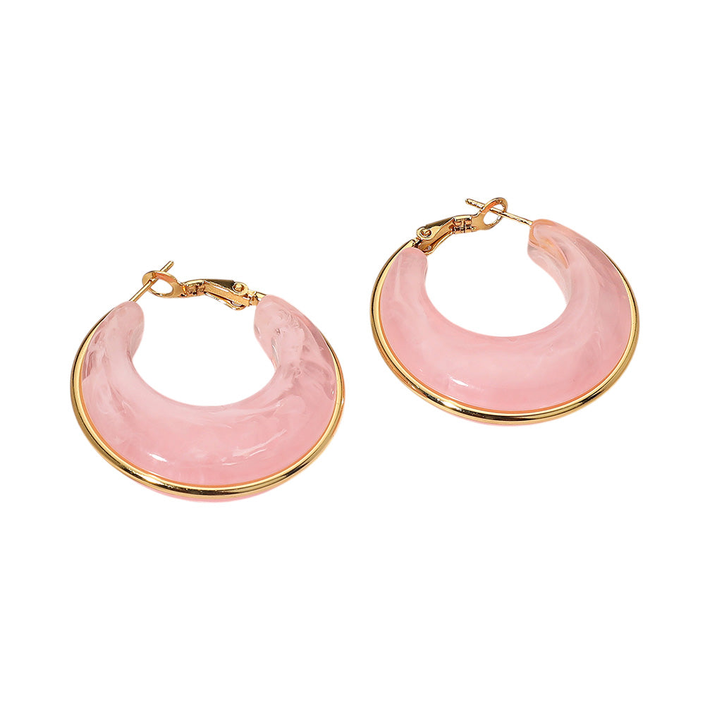 Add a bold touch with these Stainless Steel Gold Trimmed Chunky Resin Hoop Earrings. Designed with a chunky resin style and finished with sleek gold trim, these hoops are perfect for making a statement. Lightweight and versatile, they bring a modern twist to any look.