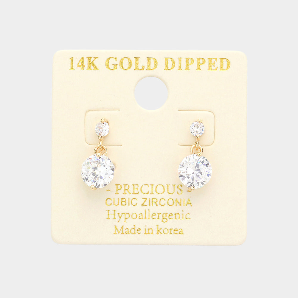14K gold dipped double cubic zirconia link dangle earrings. These earrings feature two sparkling cubic zirconia links that catch the light beautifully with every movement. A chic and timeless addition to your jewelry collection.