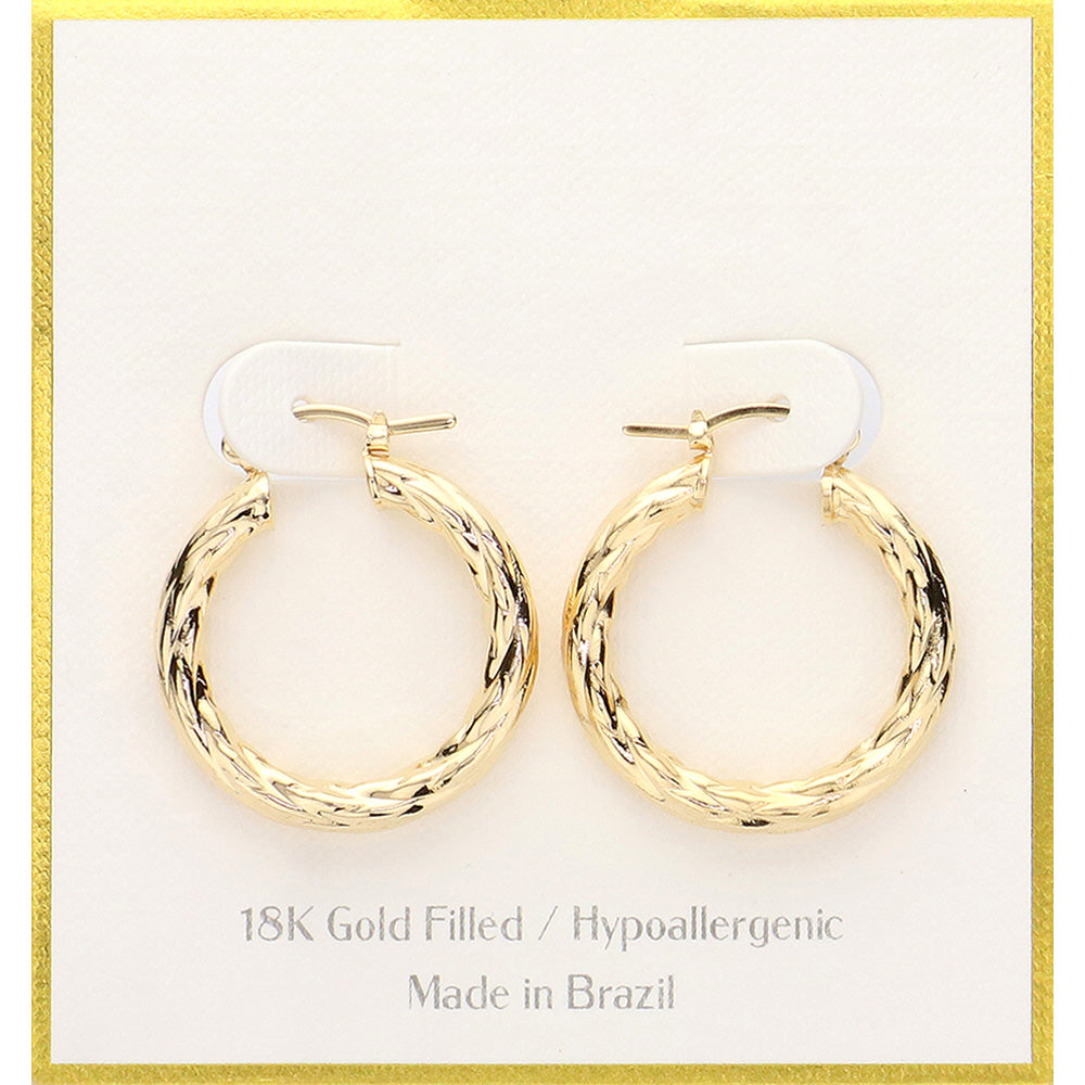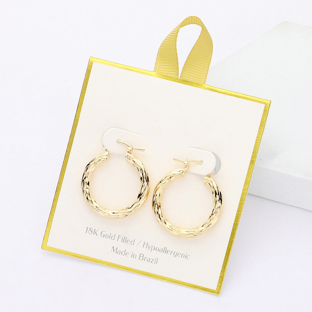 18K Gold Filled Hypoallergenic Textured Hoop Earrings feature a classic hoop design with a subtle textured finish for added style. Lightweight and comfortable, they’re hypoallergenic and safe for sensitive ears.