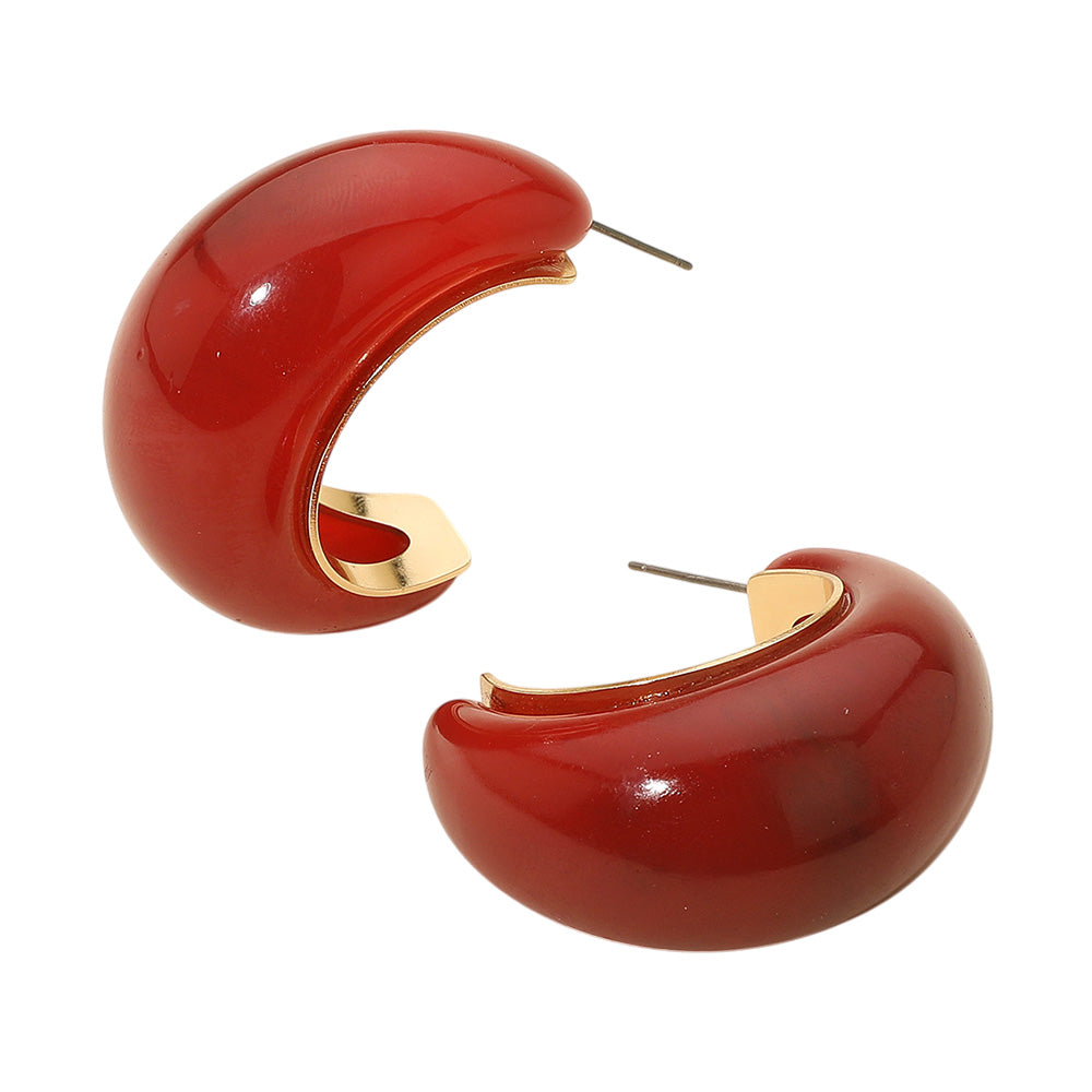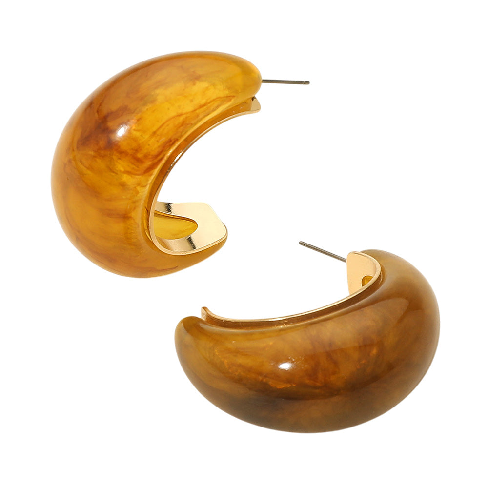 These chunky resin hoop earrings feature a glossy marbled finish that gives them a bold and stylish flair. Lightweight and easy to wear, they make a standout accessory for any outfit.