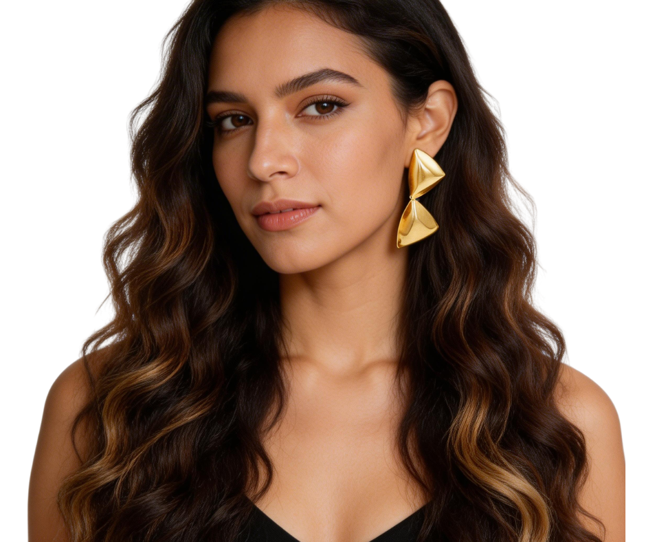 Striking geometric drop earrings with double triangle links for a bold look. Lightweight metal construction makes them comfortable to wear while the linked design adds eye-catching movement. A standout piece for adding character to your style.