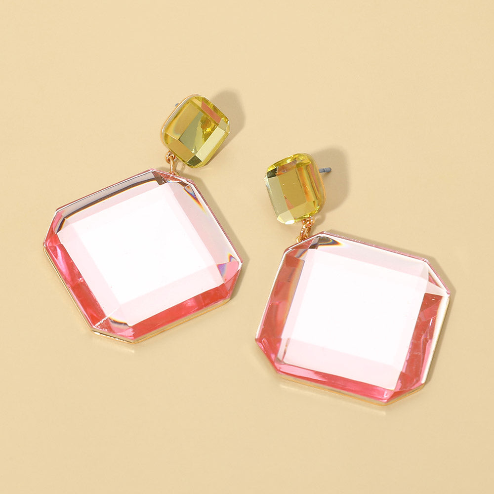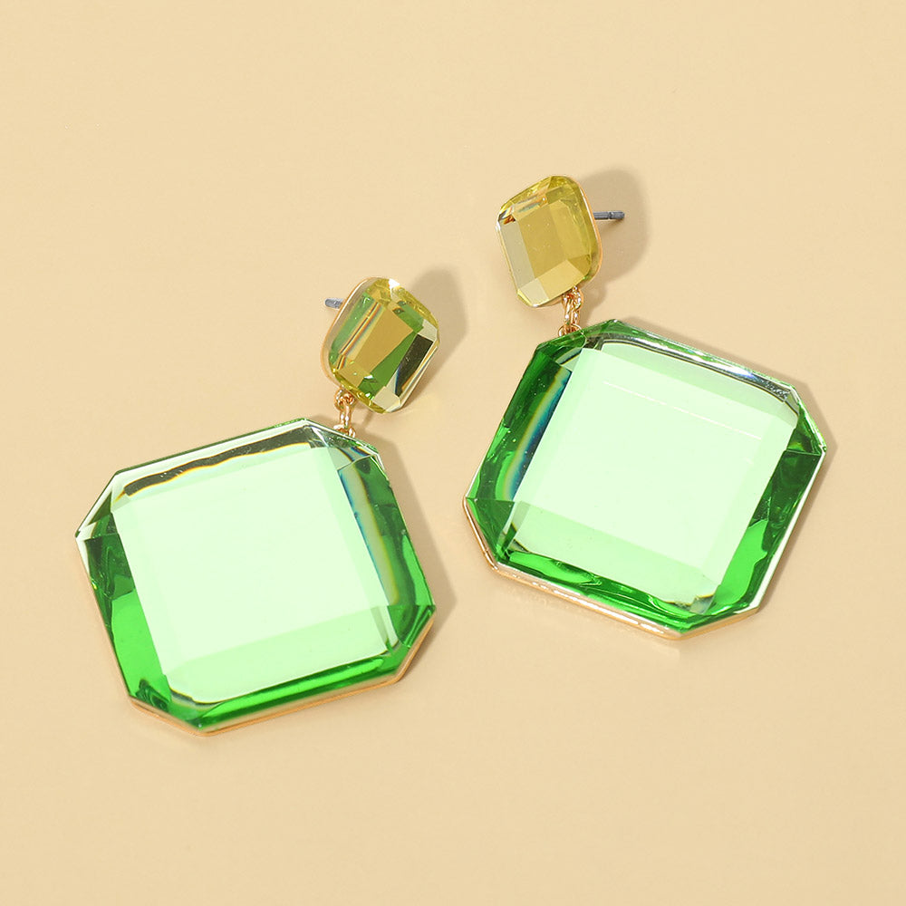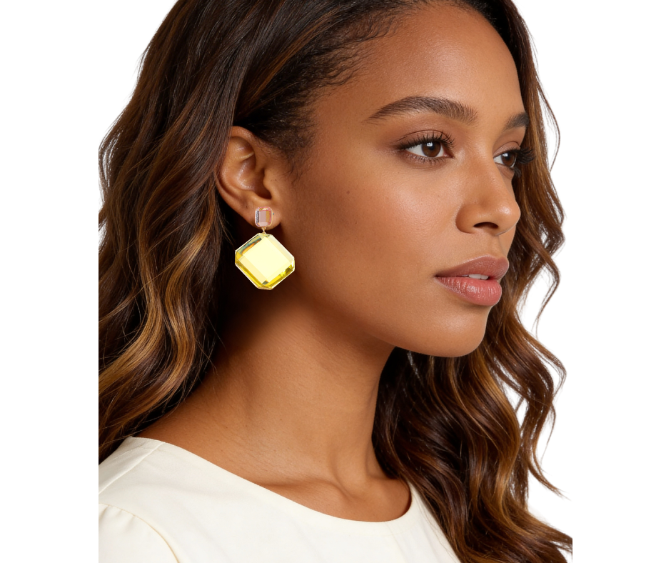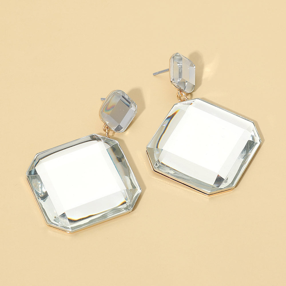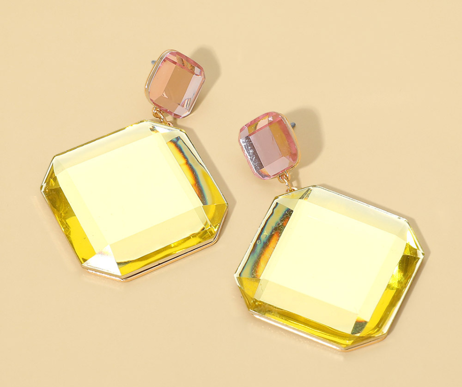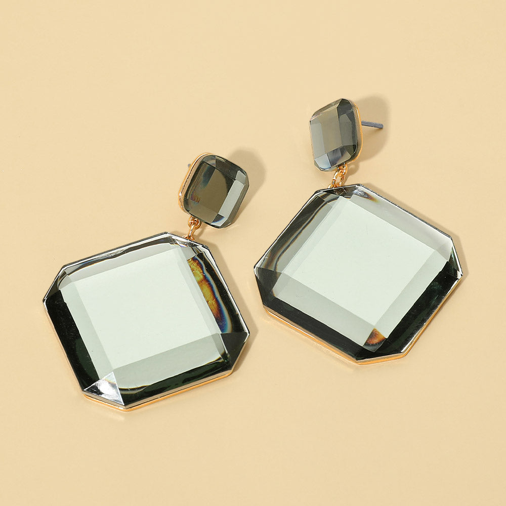 Add a modern edge to your look with these faceted geometric stone drop earrings. Designed with clean lines and a bold shape, the polished stone detail catches the light beautifully with every turn. Lightweight yet striking, these earrings are perfect for dressing up a simple outfit or pairing with your favorite statement pieces.