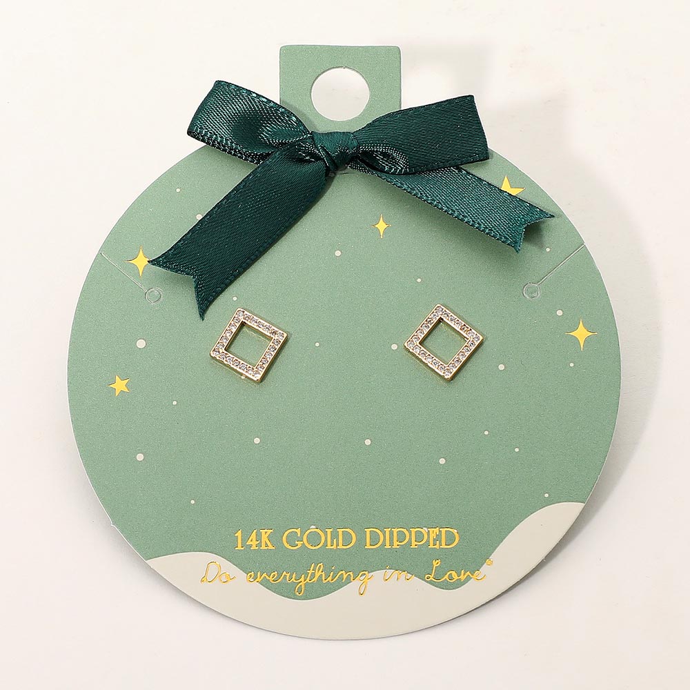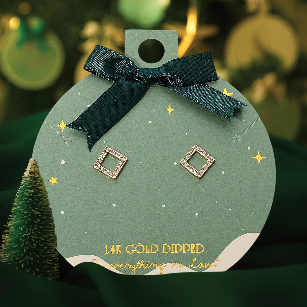 Stylish open square stud earrings with a smooth 14K gold–dipped finish and sparkling stone pavé detailing. Lightweight and easy to wear, they add a simple, modern touch that pairs well with any look.