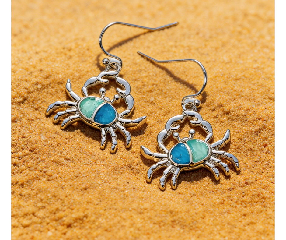 Add a fun coastal touch to your jewelry collection with these sea glass crab dangle earrings. Featuring charming crab designs paired with sea glass-inspired accents, these earrings bring a playful beach-inspired style to any look. Perfect for summer outfits, vacations, or anyone who loves ocean-inspired accessories.