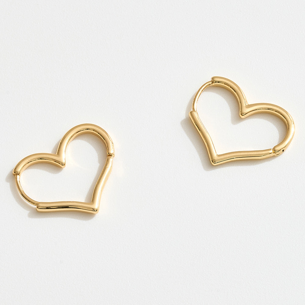 These 14K gold dipped huggie hoop earrings feature a charming open heart silhouette for a sweet and stylish touch. The close-fitting huggie design ensures a comfortable fit while adding a subtle, romantic accent to any look. Perfect for everyday wear or pairing with other favorites for a layered ear stack.