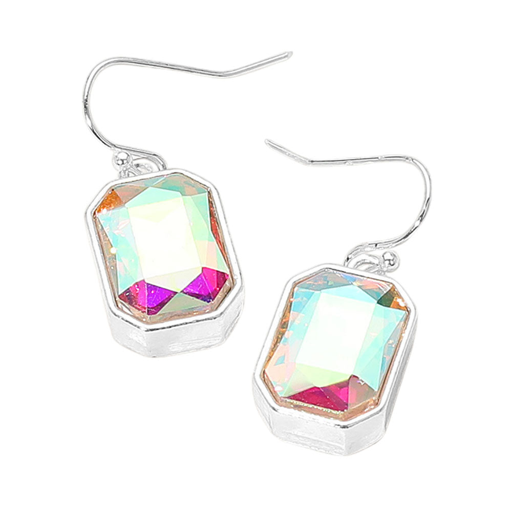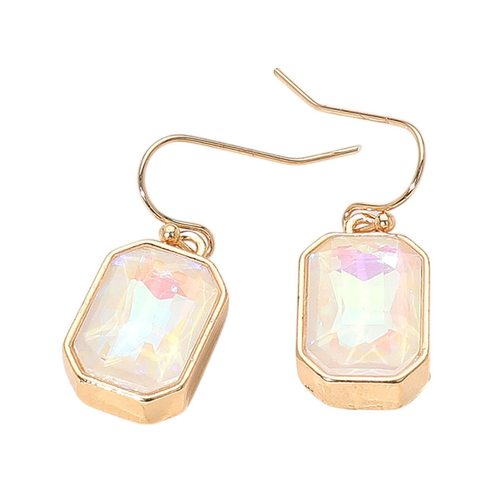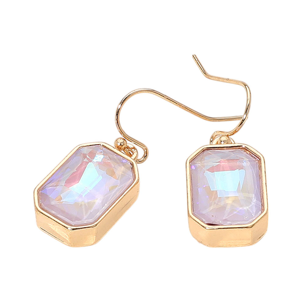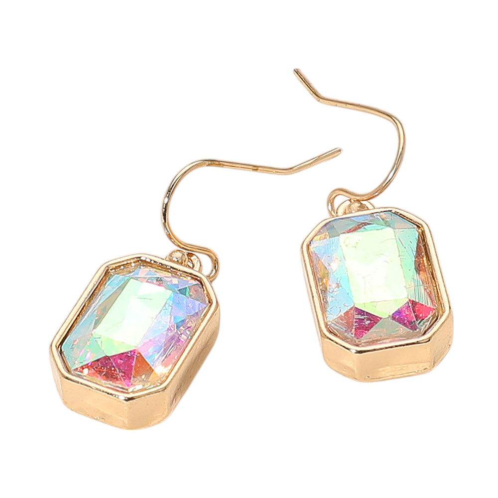Add sparkle to your look with these faceted iridescent drop earrings. Designed with sleek geometric lines and a stunning, light-catching finish, they bring a glamorous touch to both evening wear and everyday style.