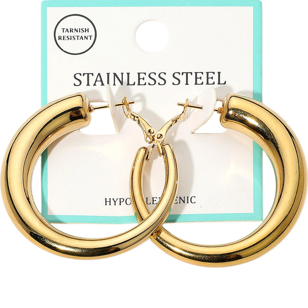 Bold yet timeless, these stainless steel chunky hoop earrings bring a modern touch to any look. Their durable finish makes them perfect for everyday wear while keeping a stylish edge.