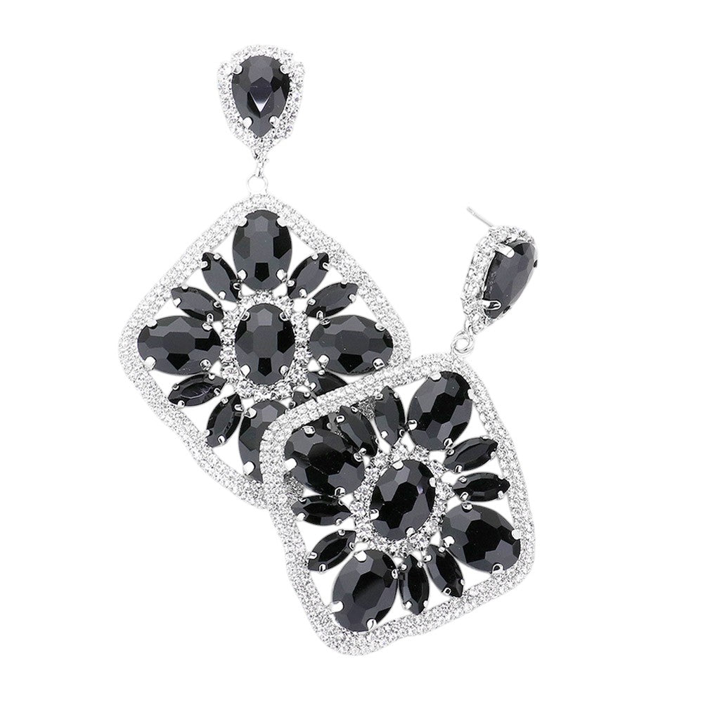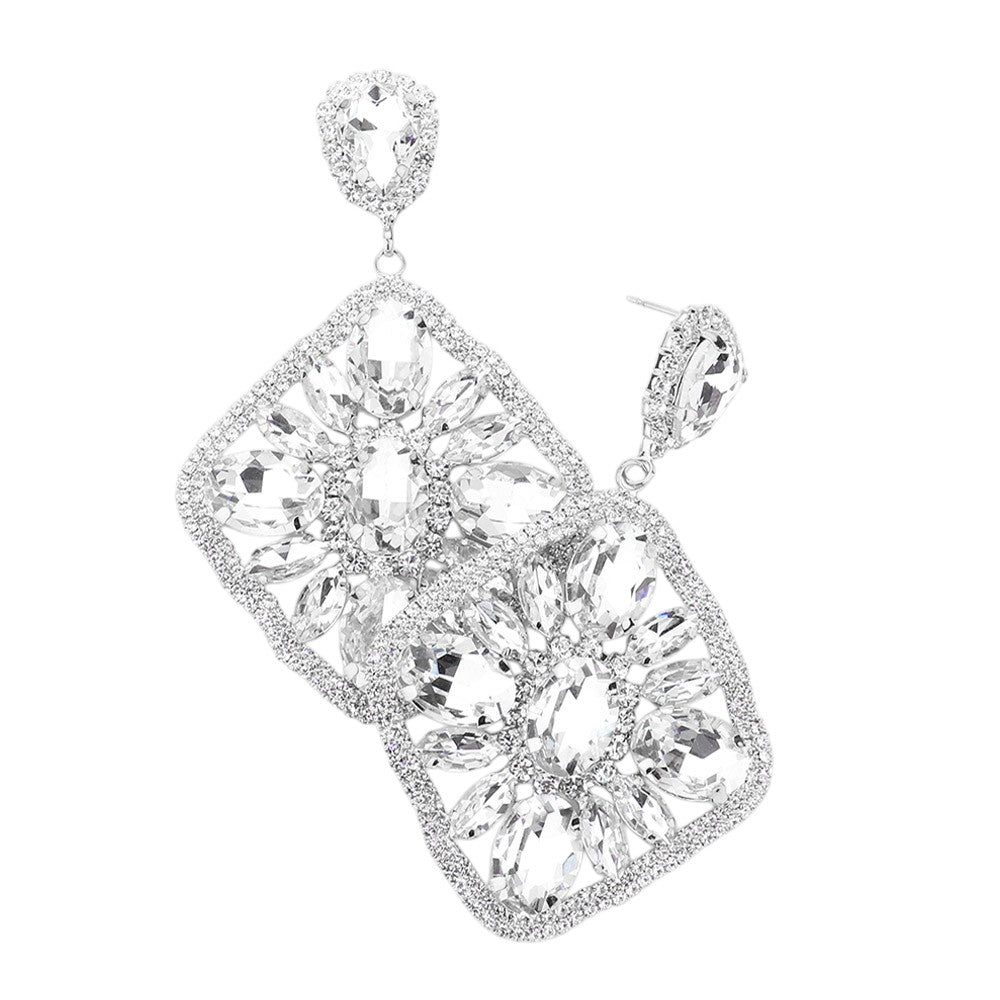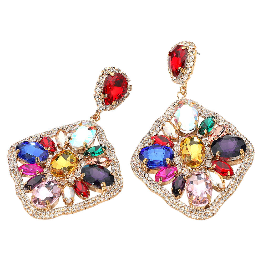 These oval marquise stone cluster accented rhinestone rhombus dangle earrings bring eye-catching sparkle and unique design together. The layered stones and geometric shape make them perfect for adding shine to any outfit.
