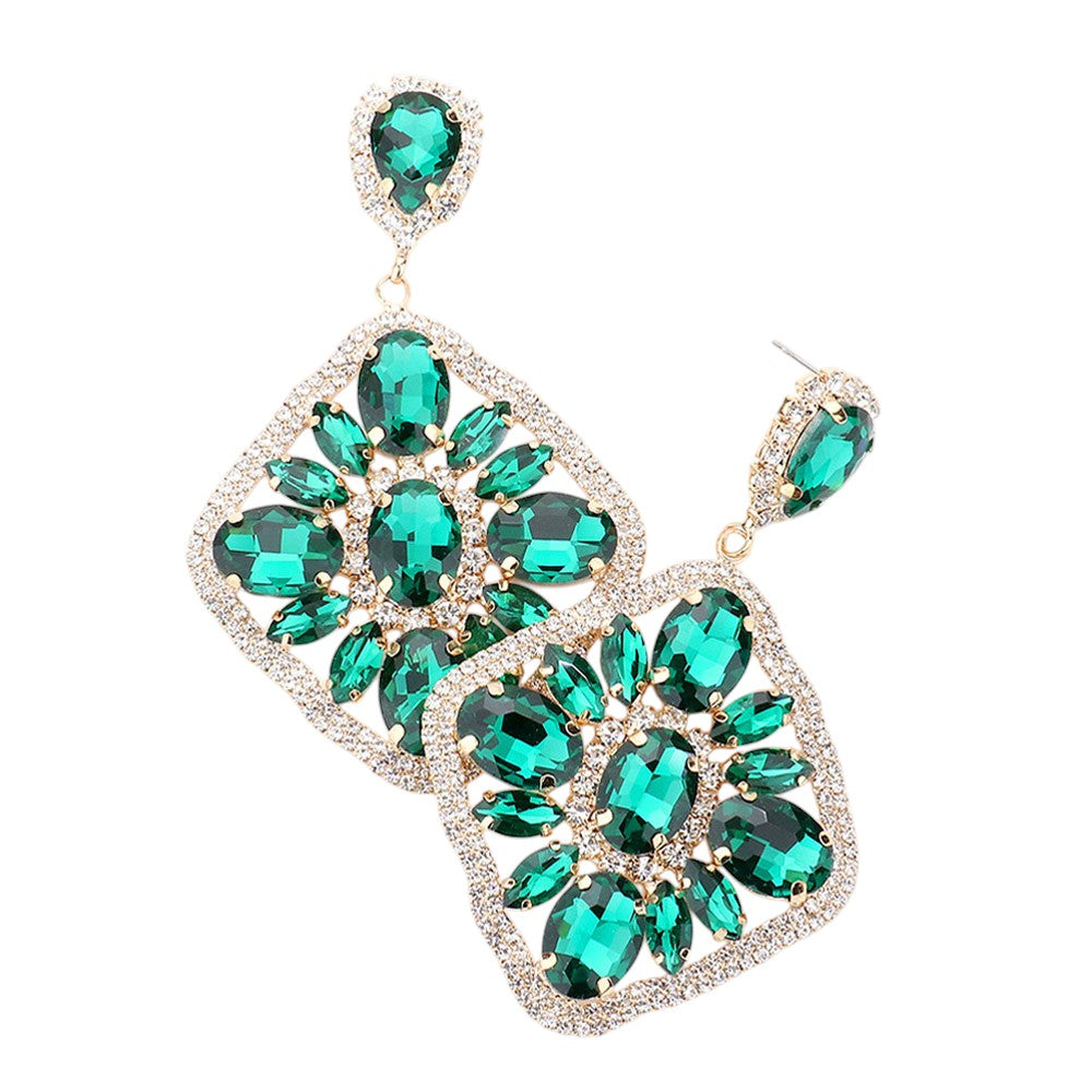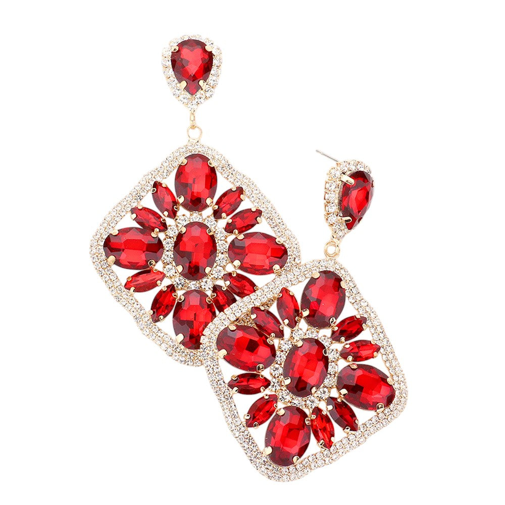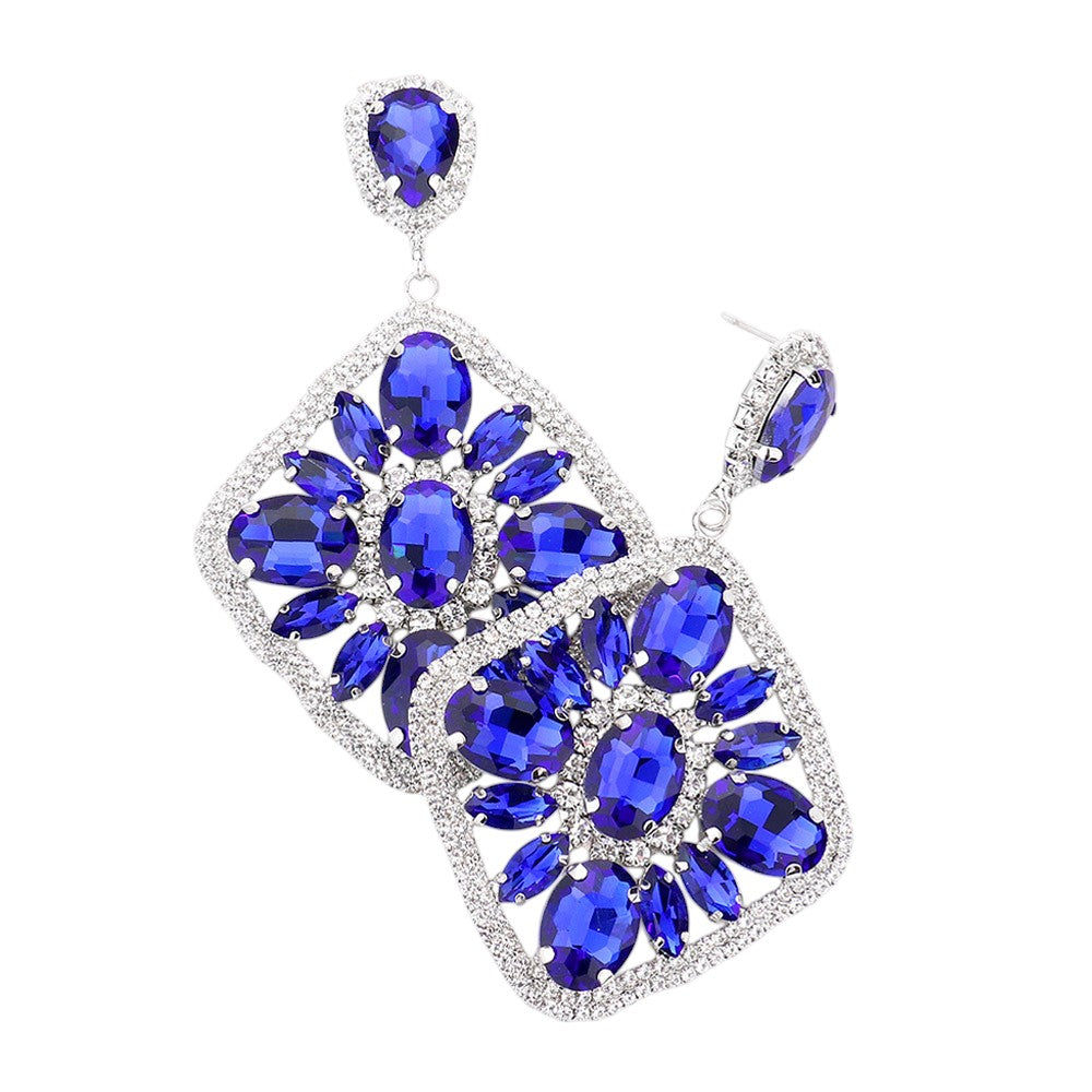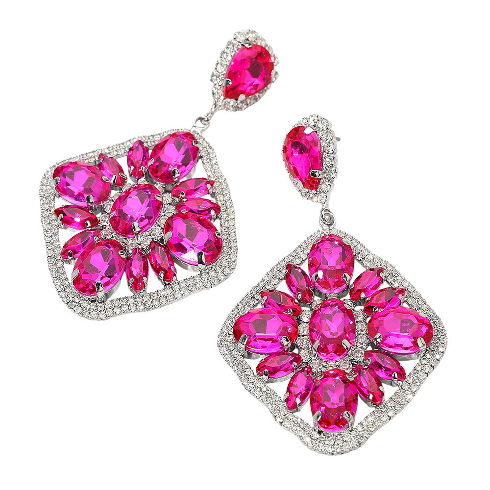 These oval marquise stone cluster accented rhinestone rhombus dangle earrings bring eye-catching sparkle and unique design together. The layered stones and geometric shape make them perfect for adding shine to any outfit.