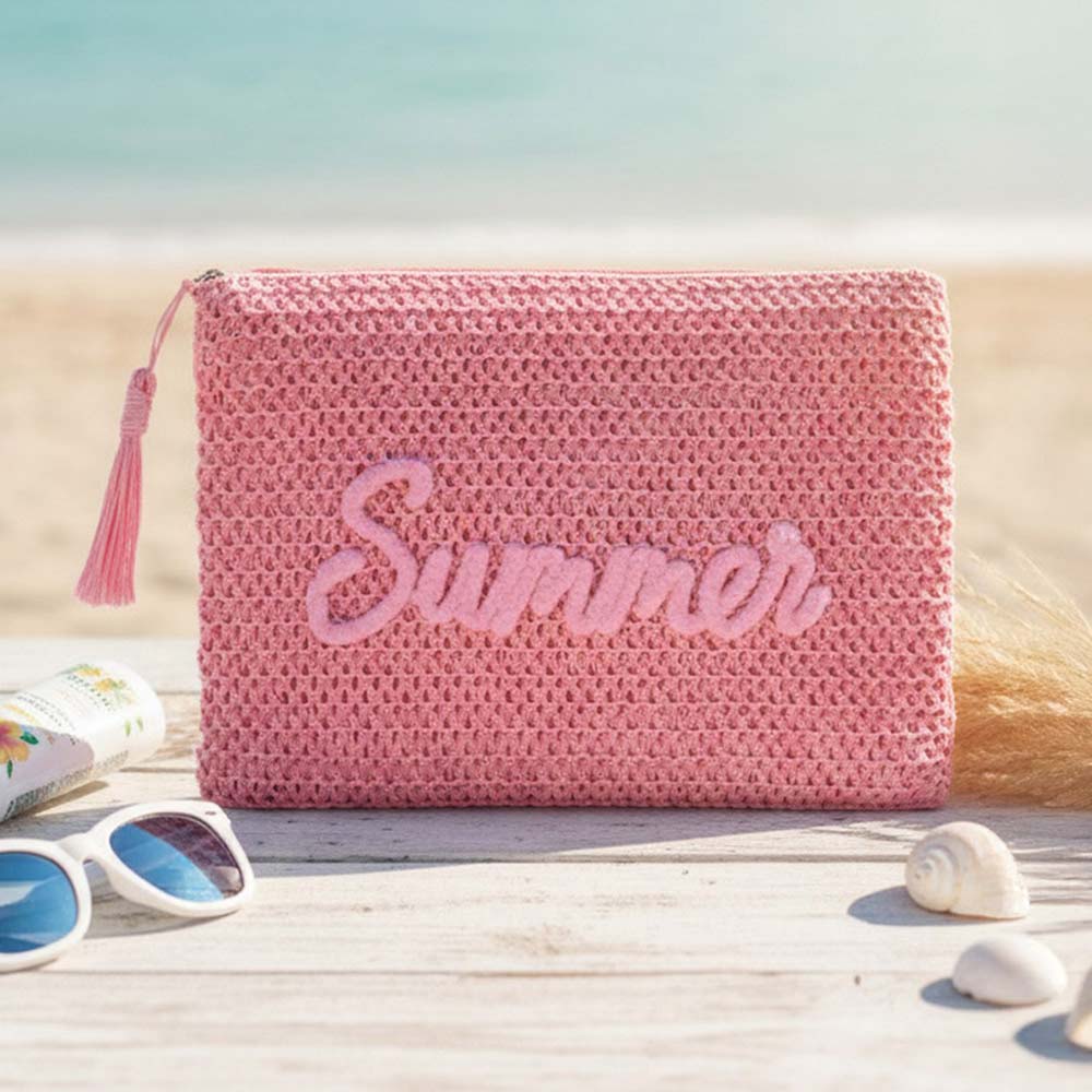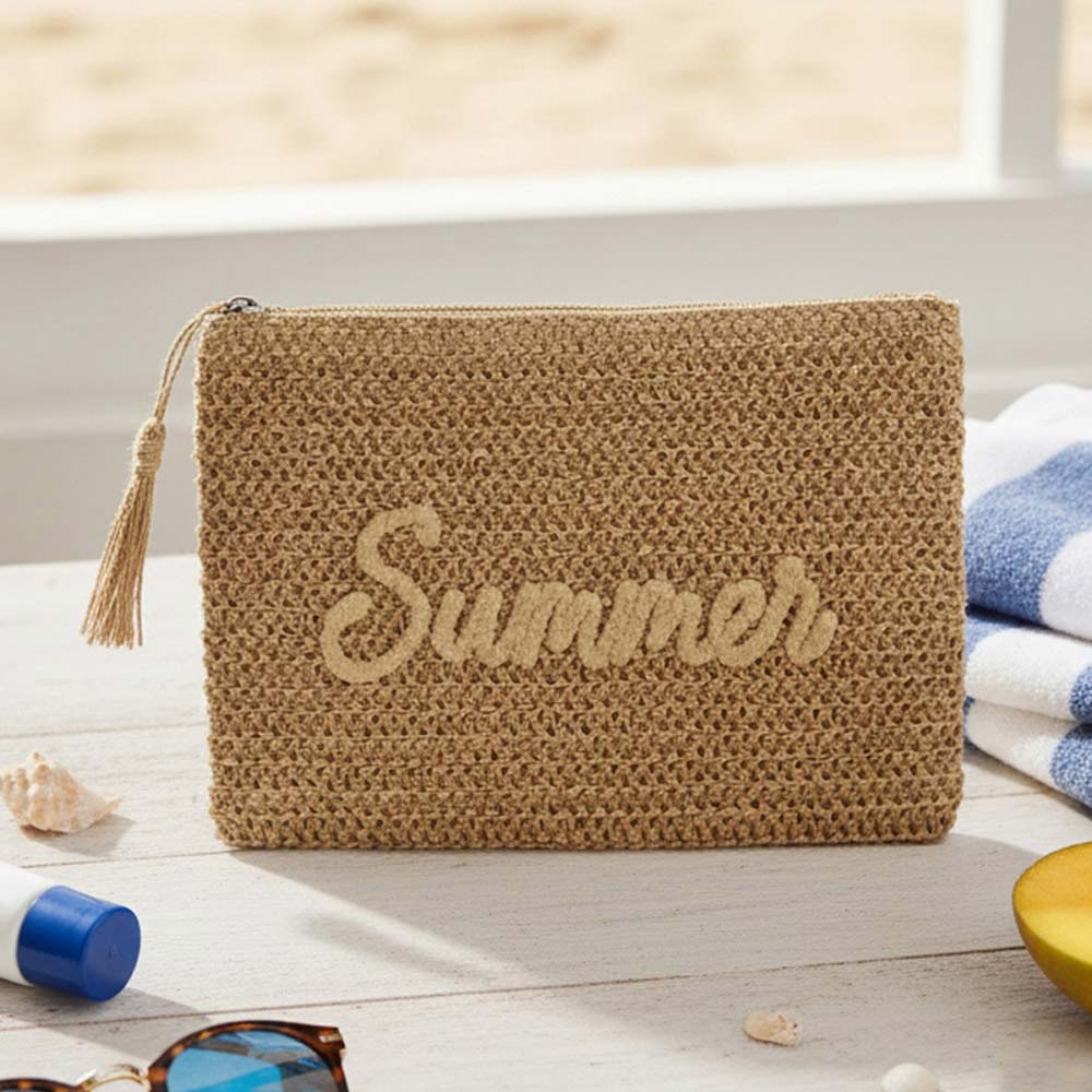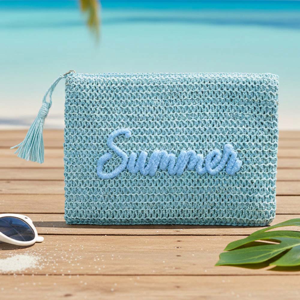 Soak up the season with this SUMMER embroidery woven straw pouch bag. Designed with textured woven straw and bold “SUMMER” embroidery, it brings effortless warm-weather vibes to any outfit. Lightweight and easy to carry, it’s perfect for beach days, vacations, or sunny weekend outings. A fun, seasonal piece that pairs beautifully with your favorite summer looks.