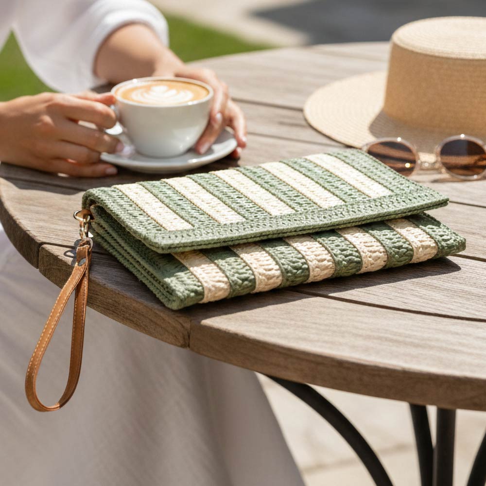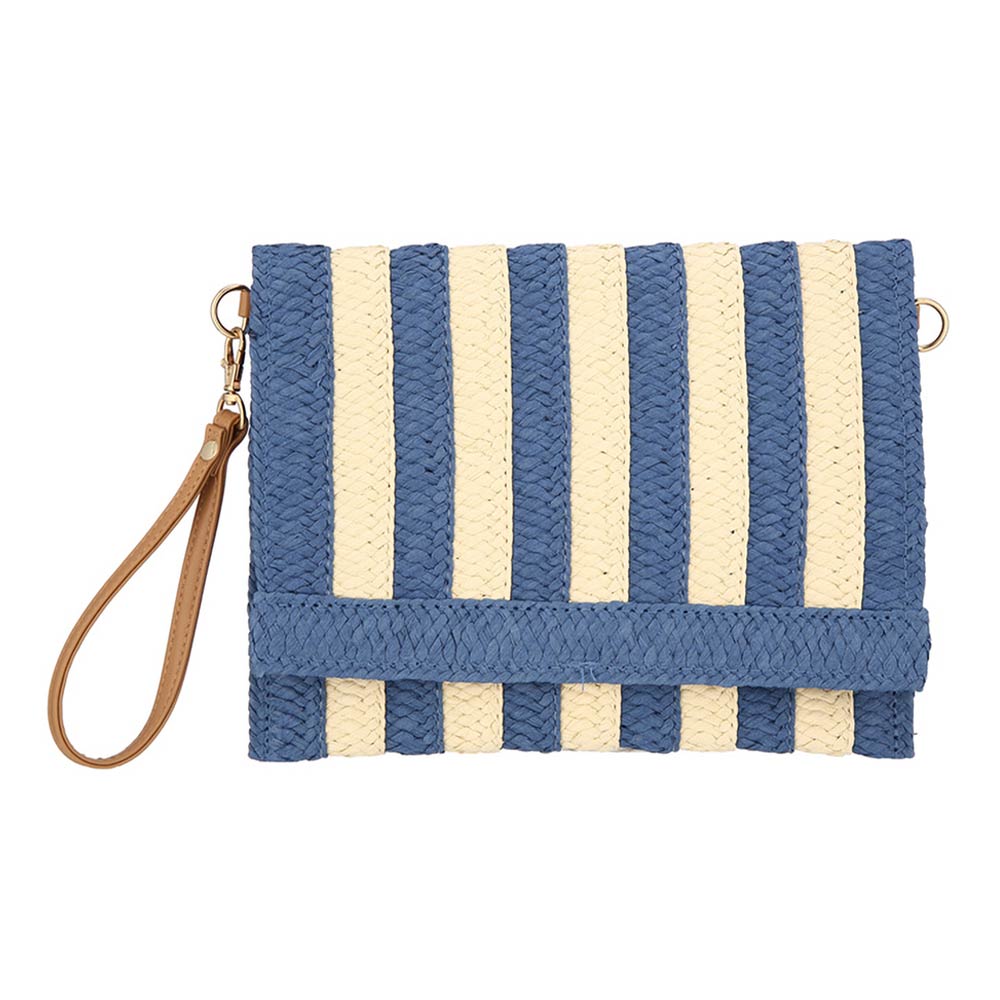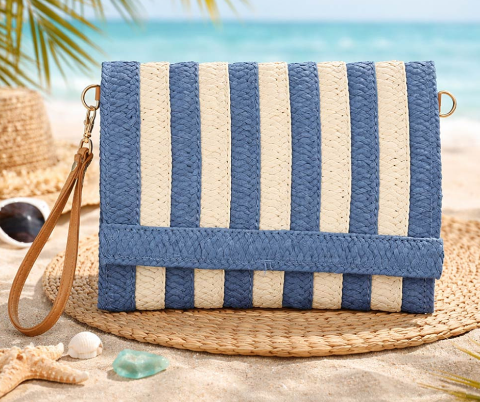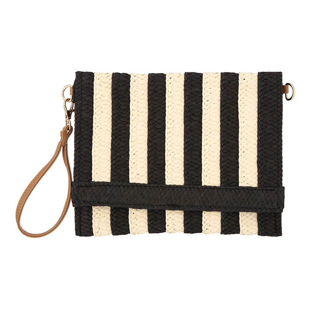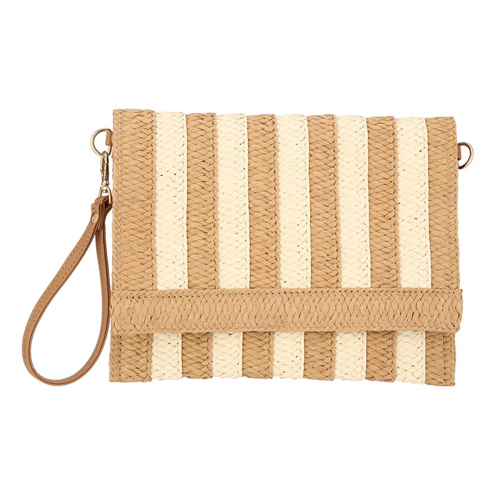 This striped woven foldover bag brings texture and effortless style to your look. Designed with a versatile silhouette, it can be worn as a wristlet, carried as a clutch, or styled as a crossbody for hands-free ease. Lightweight and easy to pair with your favorite outfits.