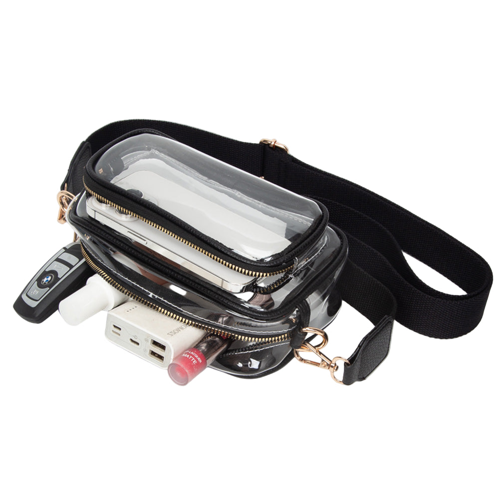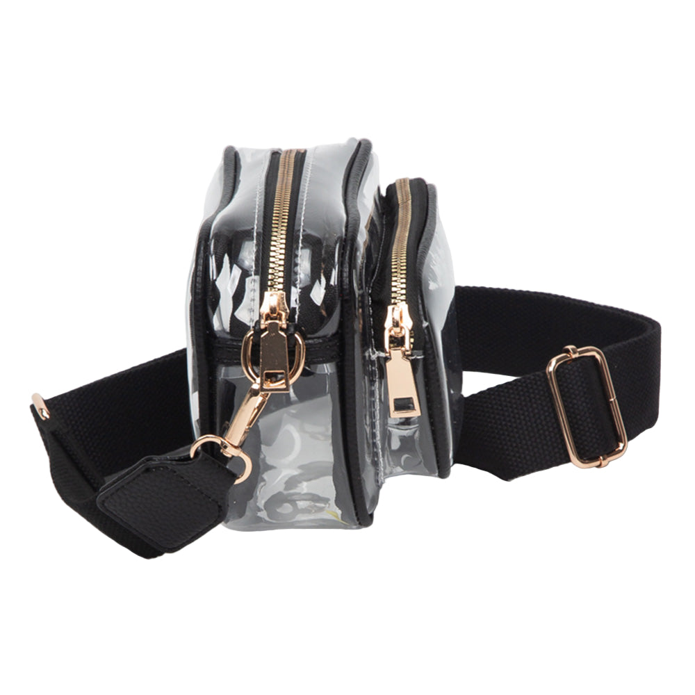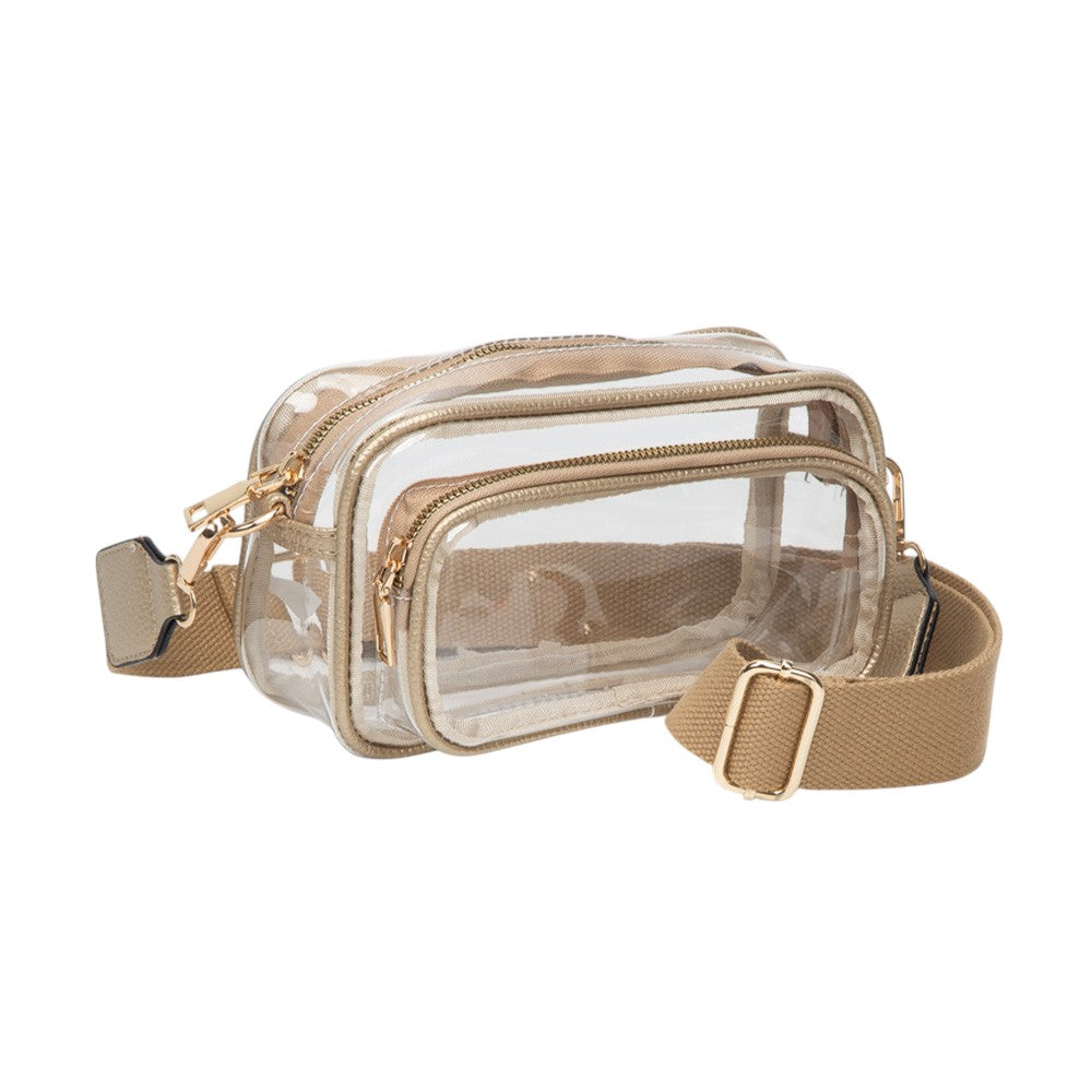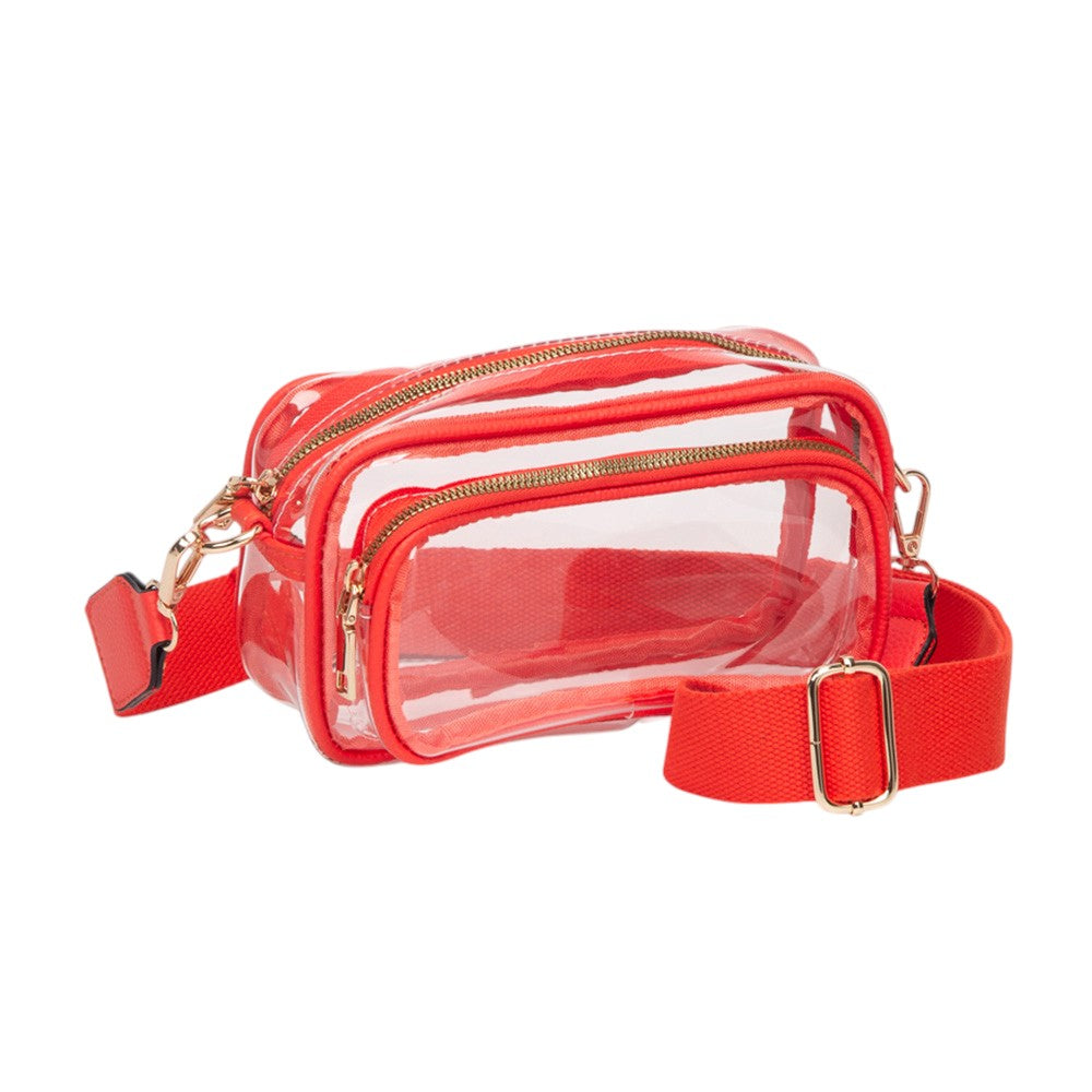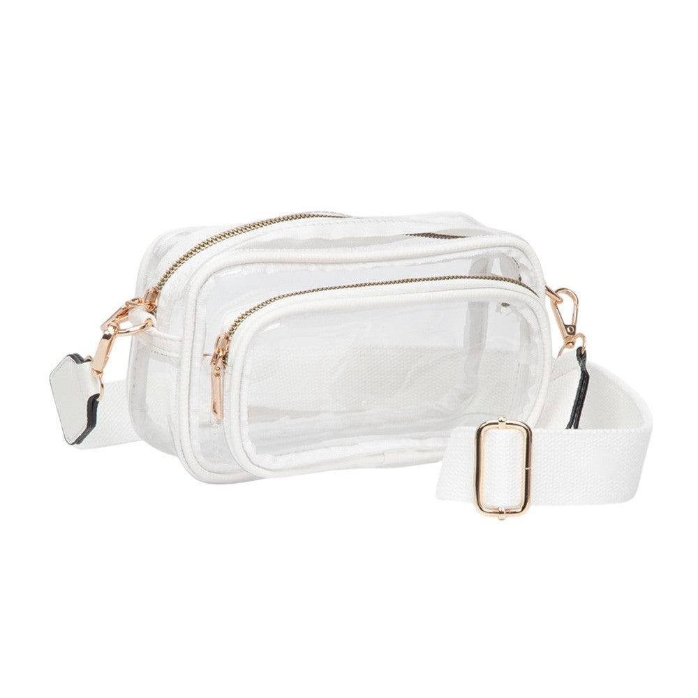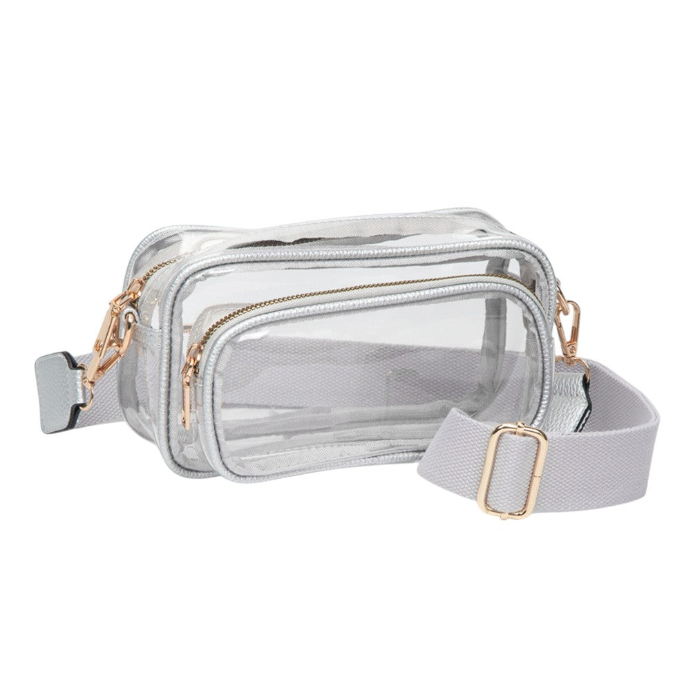 A sleek and modern transparent rectangular crossbody bag designed for a clean, minimalist look. Features a structured shape, adjustable strap, and secure closure—perfect for game days, concerts, or everyday outings where clear bags are required.