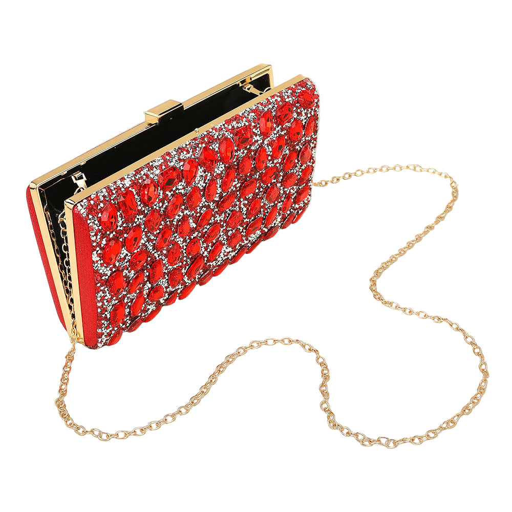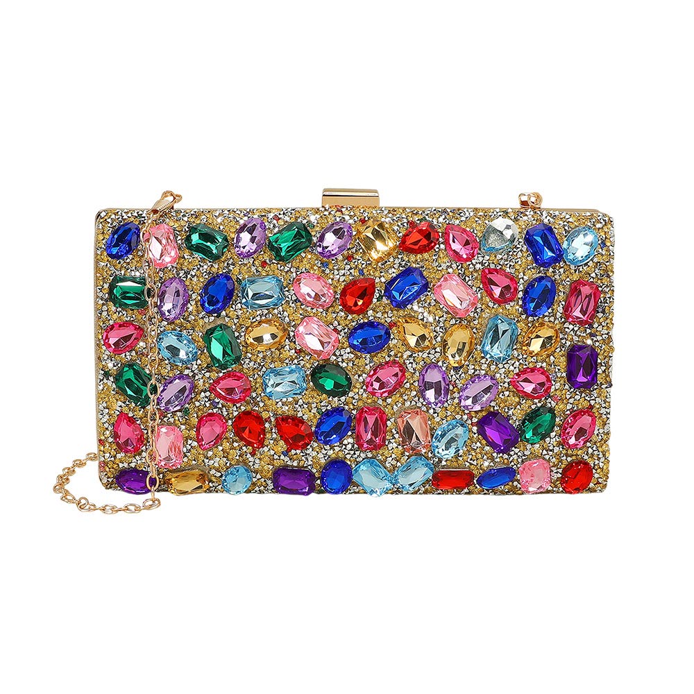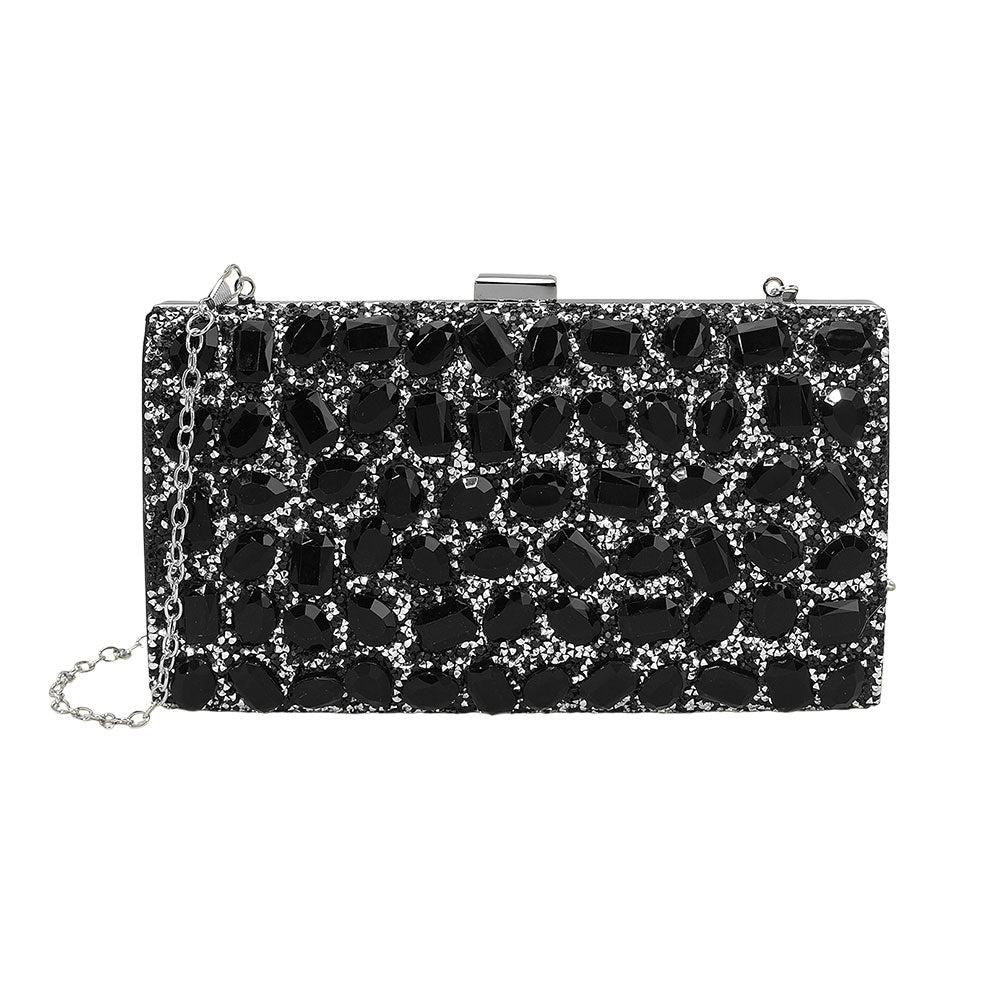 Add a touch of sparkle to your look with this faceted stone embellished clutch bag. The shimmering design makes it perfect for evening events, parties, or special occasions. Compact yet eye-catching, it’s the perfect finishing piece for any outfit.