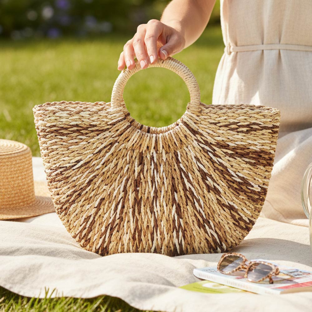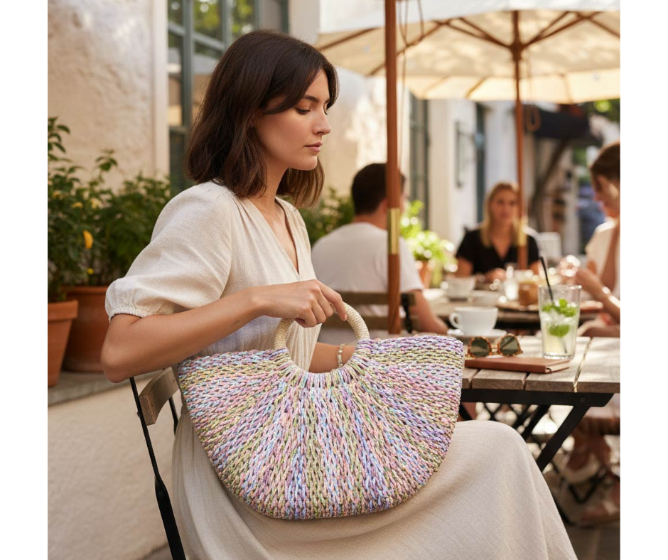 Chic and versatile, this woven crossbody bag features a stylish round top handle and a beautifully textured finish. The structured silhouette gives it a polished feel while keeping it easy to wear. Carry it by the handle for a refined look or use the crossbody strap for hands-free convenience. Perfect for everyday outings or adding a touch of detail to your favorite outfit.
