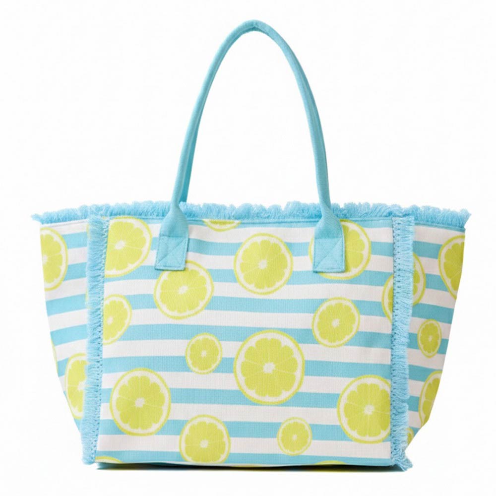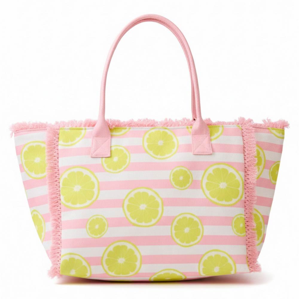 Freshen up your look with this Lemon Pattern Stripe Fringe Trim Shoulder Tote Bag. Featuring bright lemon prints, classic stripes, and playful fringe trim, it adds a cheerful, summer-ready touch to any outfit. Spacious and lightweight, it’s perfect for beach days, farmers markets, or everyday sunny adventures.