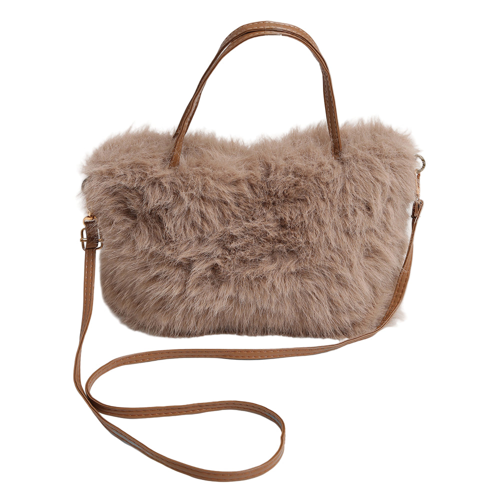 This solid faux fur mini handbag adds a cozy and stylish touch to your look. Soft to the touch with a compact design, it can be worn as a handbag or crossbody for versatile use. Perfect for adding a fun accent to your fall and winter outfits.