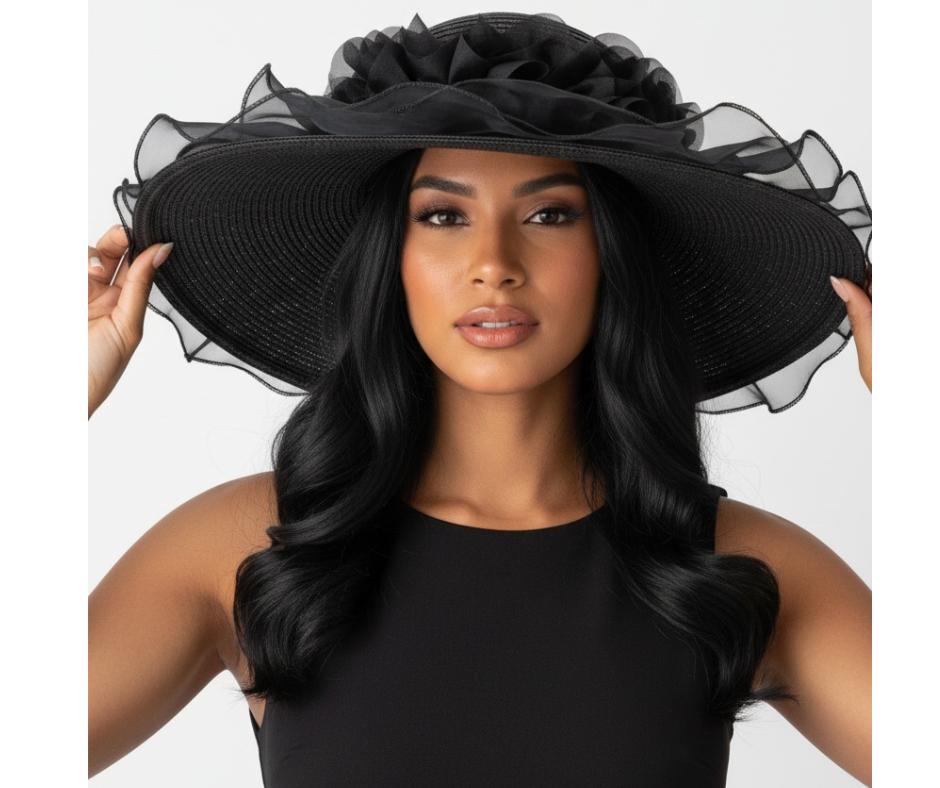 Elevate your sun-ready style with this oversized wide brim straw hat featuring a soft sheer ruffle overlay. The dramatic brim offers beautiful coverage while the delicate ruffle detail adds a romantic, feminine finish — perfect for beach days, brunches, and vacation escapes.
