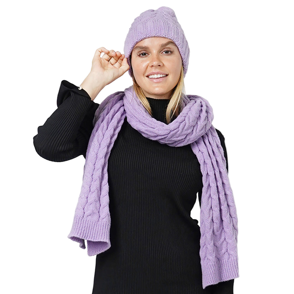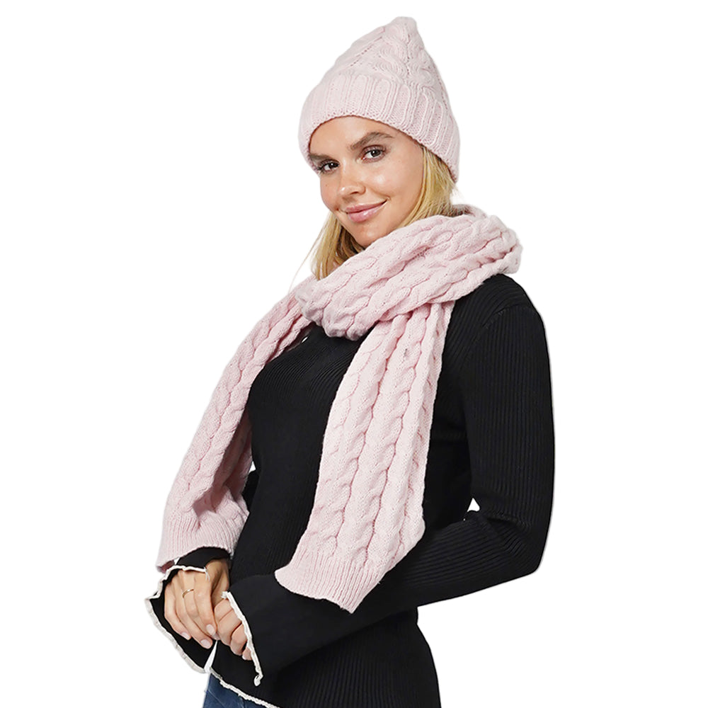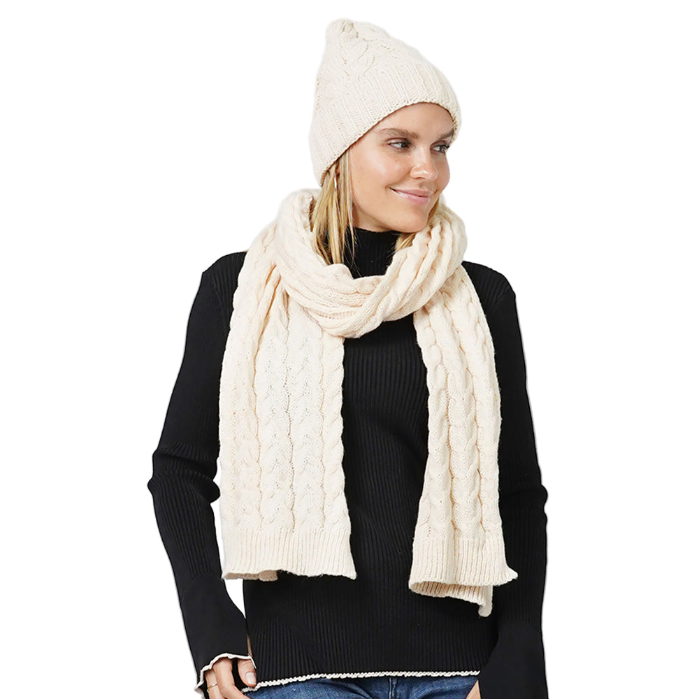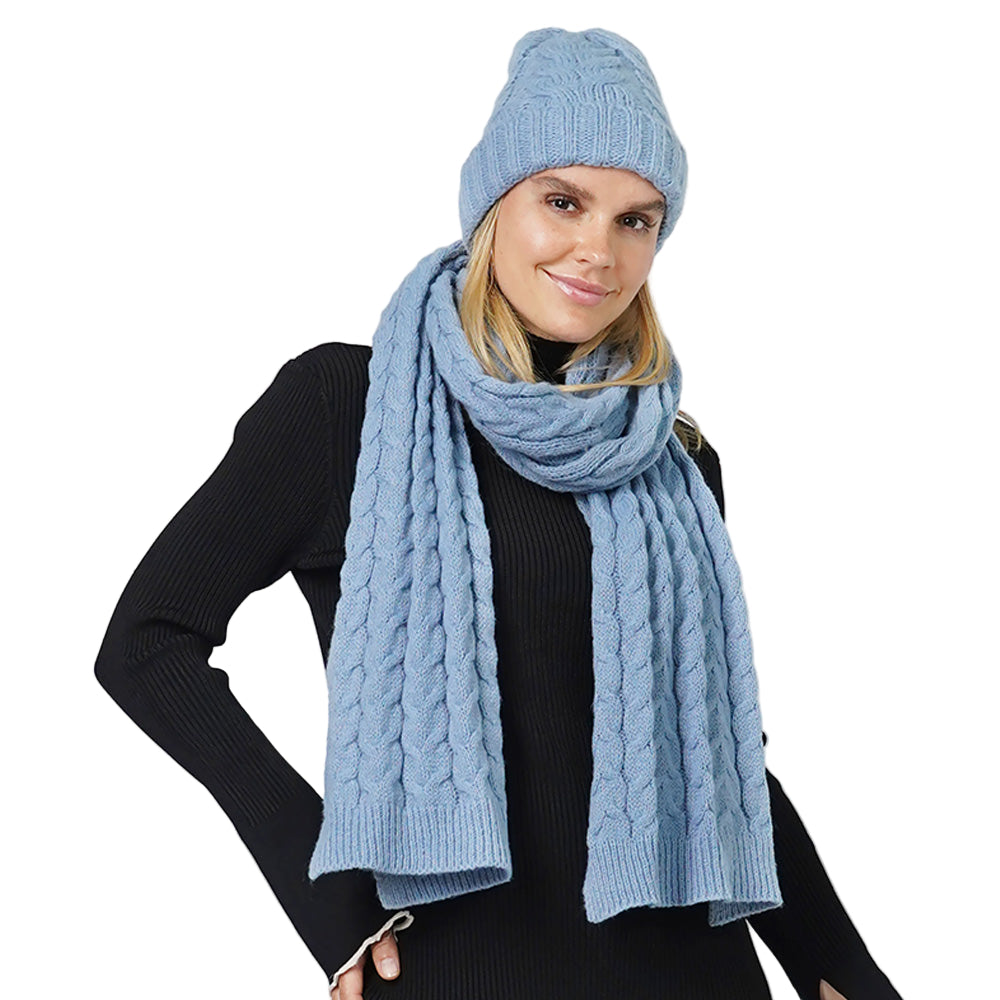 Stay cozy and stylish with this cable knit hat and scarf set. Crafted with a soft, warm knit, the matching pieces provide both comfort and classic winter charm. Perfect for chilly days, outdoor adventures, or gifting to someone special.