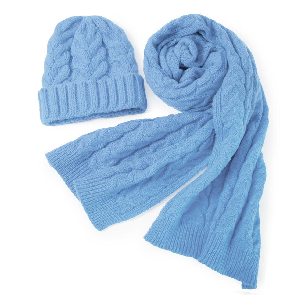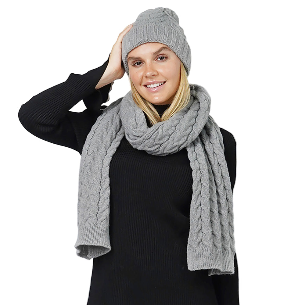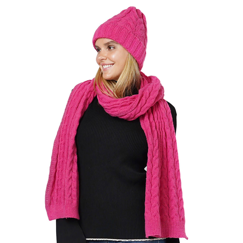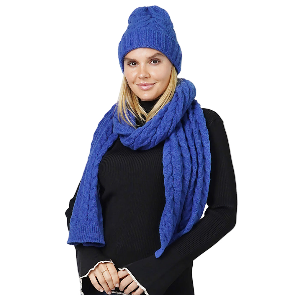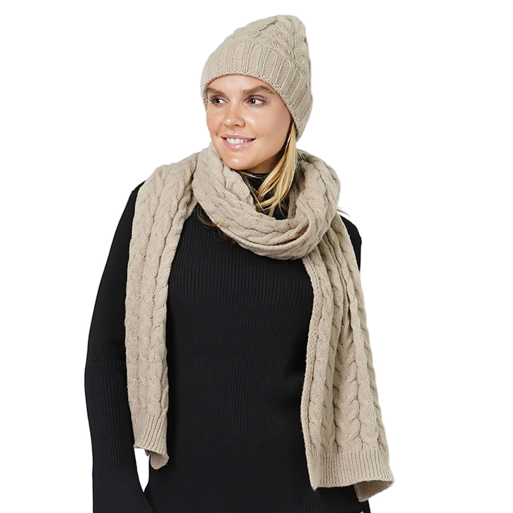 Stay cozy and stylish with this cable knit hat and scarf set. Crafted with a soft, warm knit, the matching pieces provide both comfort and classic winter charm. Perfect for chilly days, outdoor adventures, or gifting to someone special.