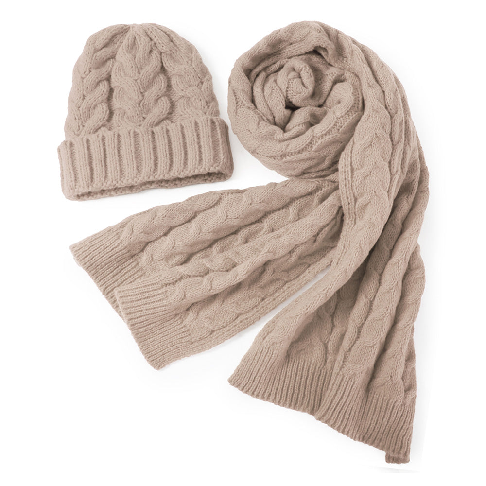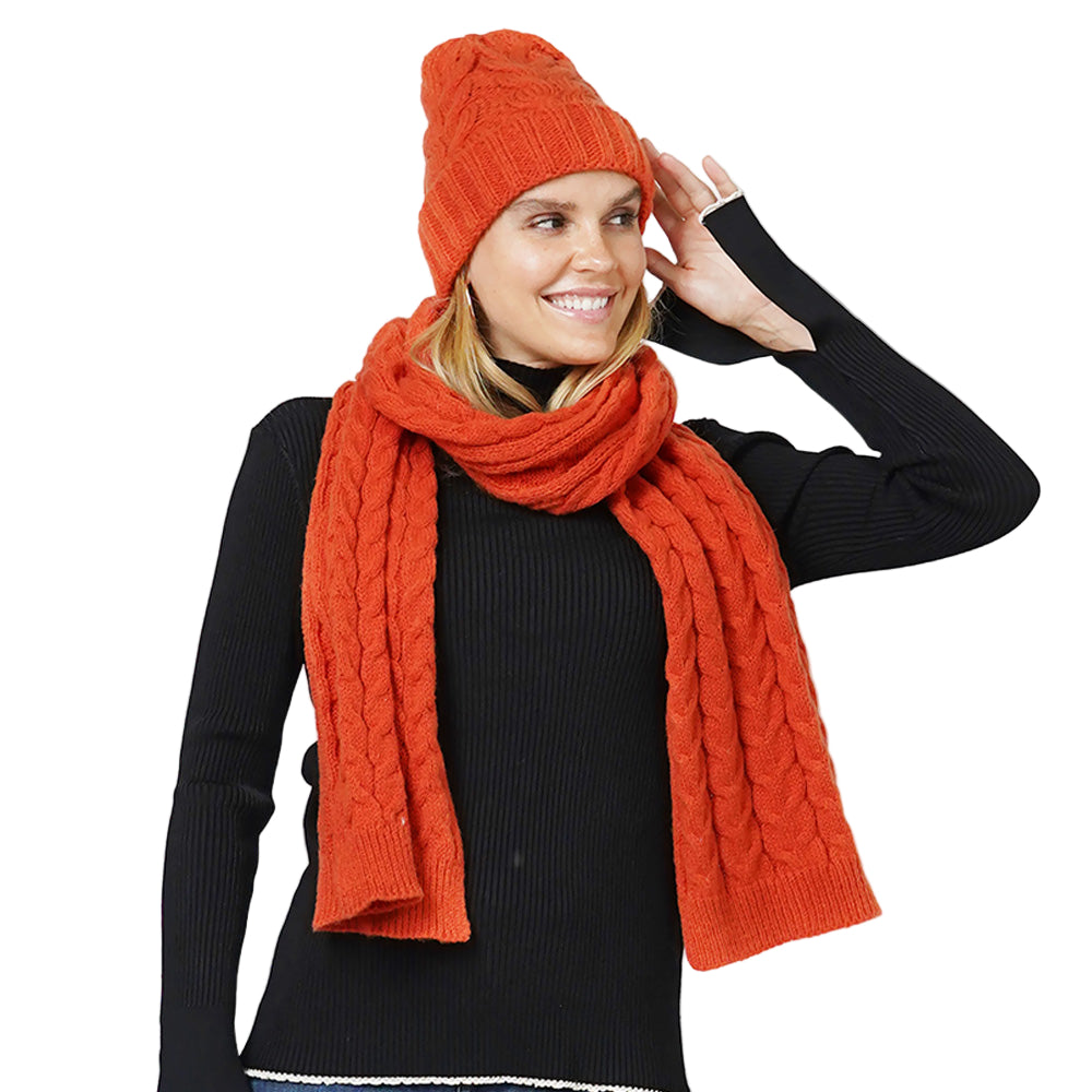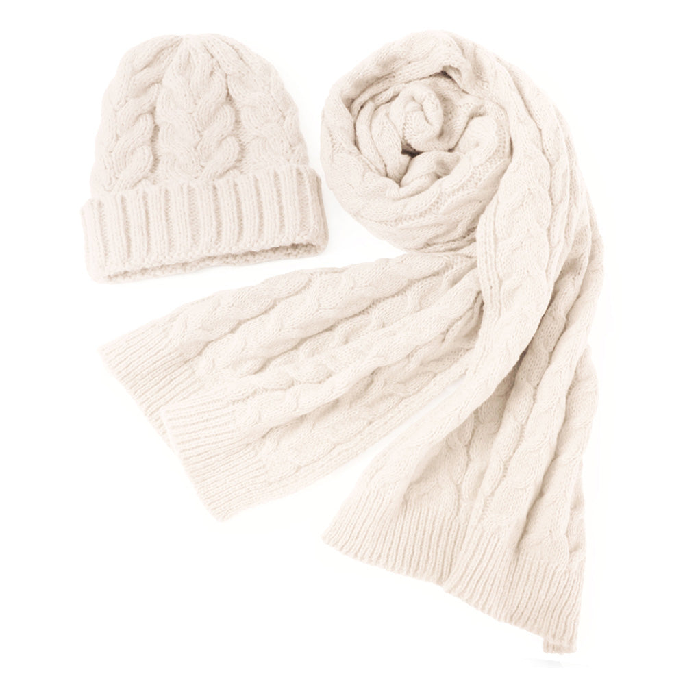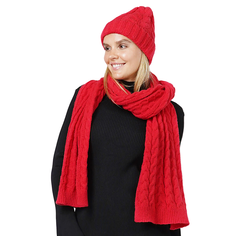 Stay cozy and stylish with this cable knit hat and scarf set. Crafted with a soft, warm knit, the matching pieces provide both comfort and classic winter charm. Perfect for chilly days, outdoor adventures, or gifting to someone special.