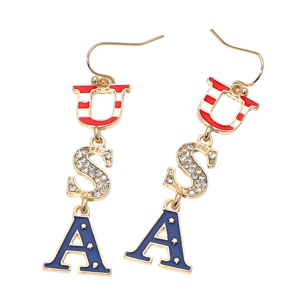 Make a bold patriotic statement with these USA letter drop earrings. Designed to stand out, the eye-catching letter detail adds fun movement and festive flair to any outfit. Perfect for holidays, summer events, concerts, or showing off your American pride, these earrings are lightweight and easy to style.