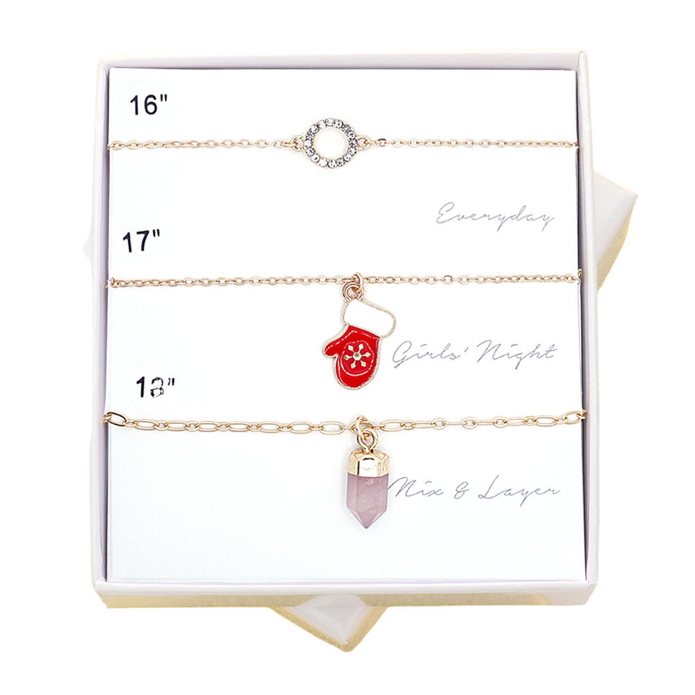 Celebrate the season with this 3 pcs open circle natural stone christmas tree pendant necklace set. Each necklace features a festive tree design framed by a natural stone open circle, blending holiday charm with a unique touch. A perfect pick for seasonal wear or gifting.