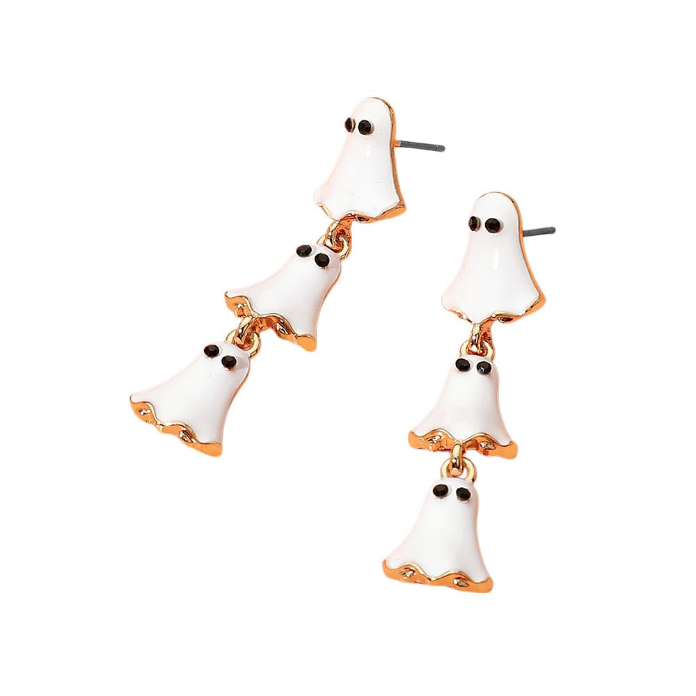 Boo in style with these triple ghost dangle link earrings! Featuring three playful ghost charms in a vertical link design, they’re a spooky-cute way to celebrate the Halloween season.