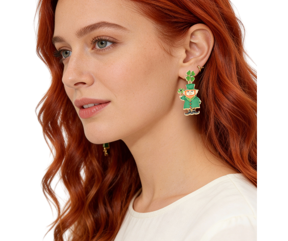 These St. Patrick’s Day leprechaun charm drop dangle earrings add a playful touch to your festive look. Lightweight with eye-catching movement, they’re easy to wear all day. The perfect fun accessory to celebrate St. Patrick’s Day in charming style.
