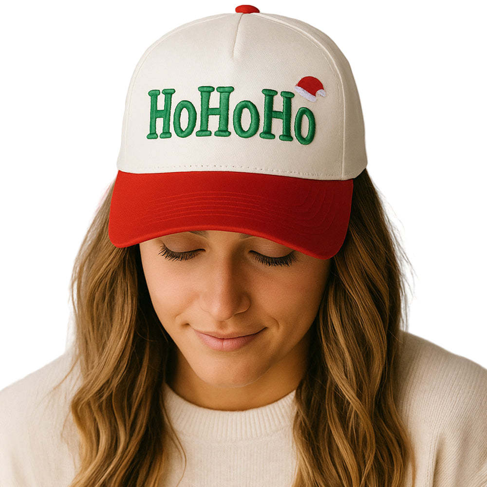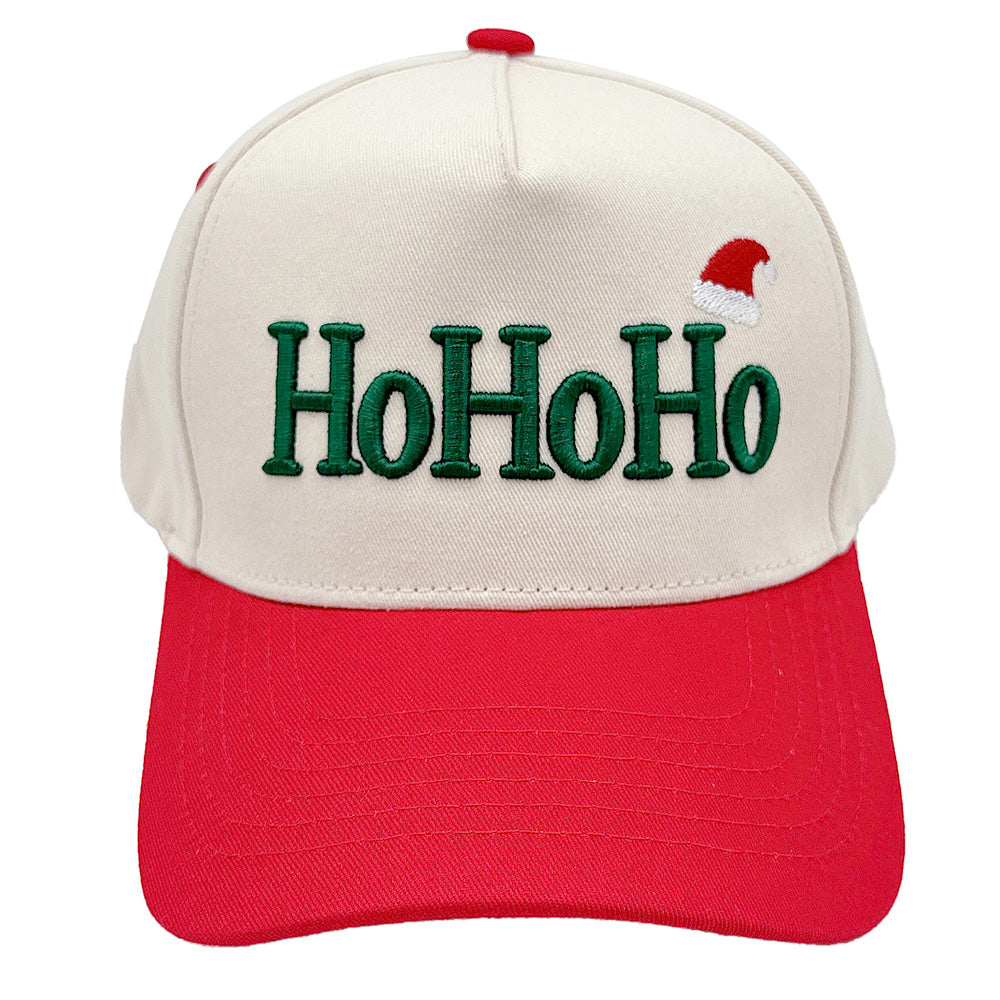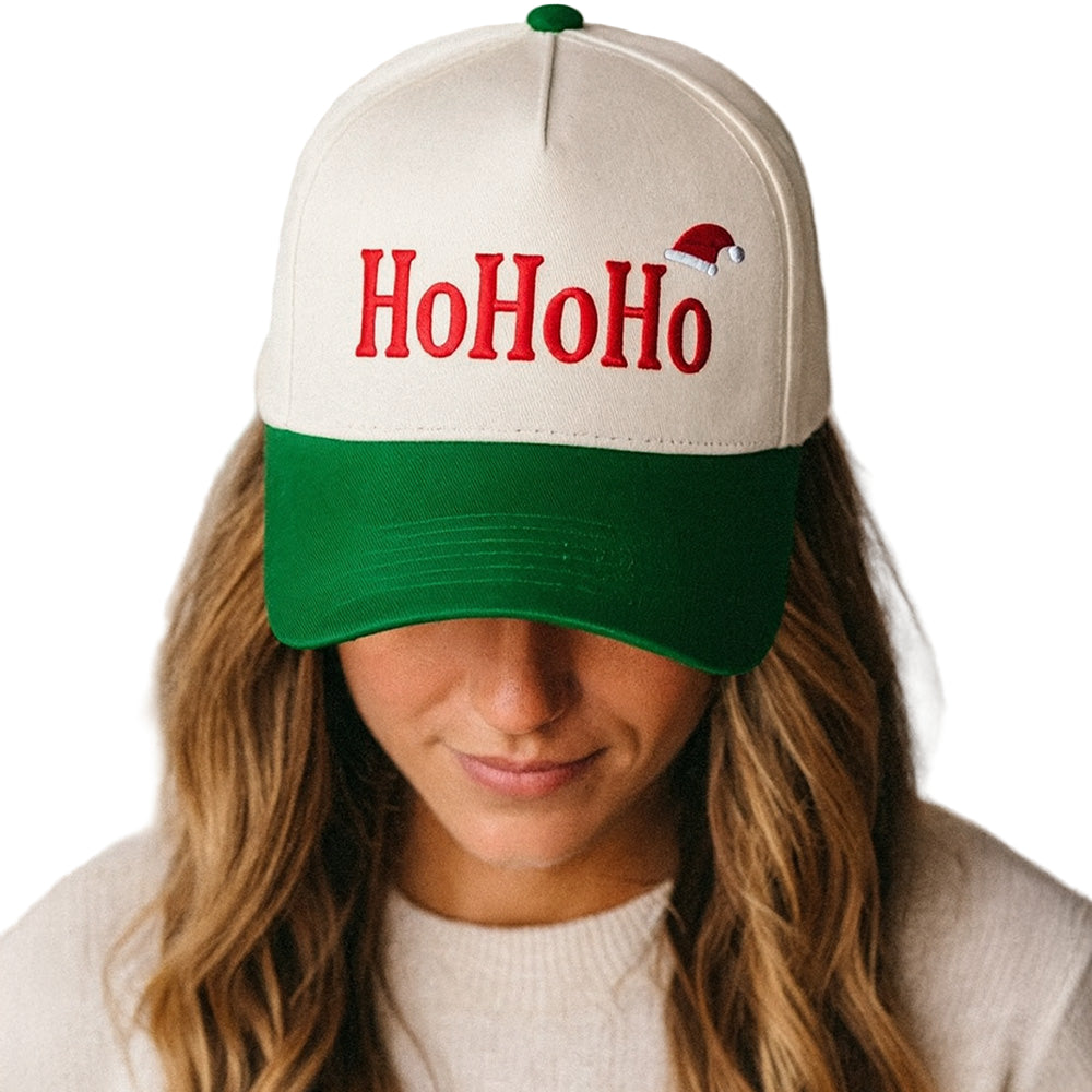 Spread holiday cheer with this HOHOHO embroidered five panel canvas snapback cap. Made from durable canvas with festive stitching, it features an adjustable snapback closure for a comfortable fit. Perfect for casual wear, holiday events, or gifting during the festive season.