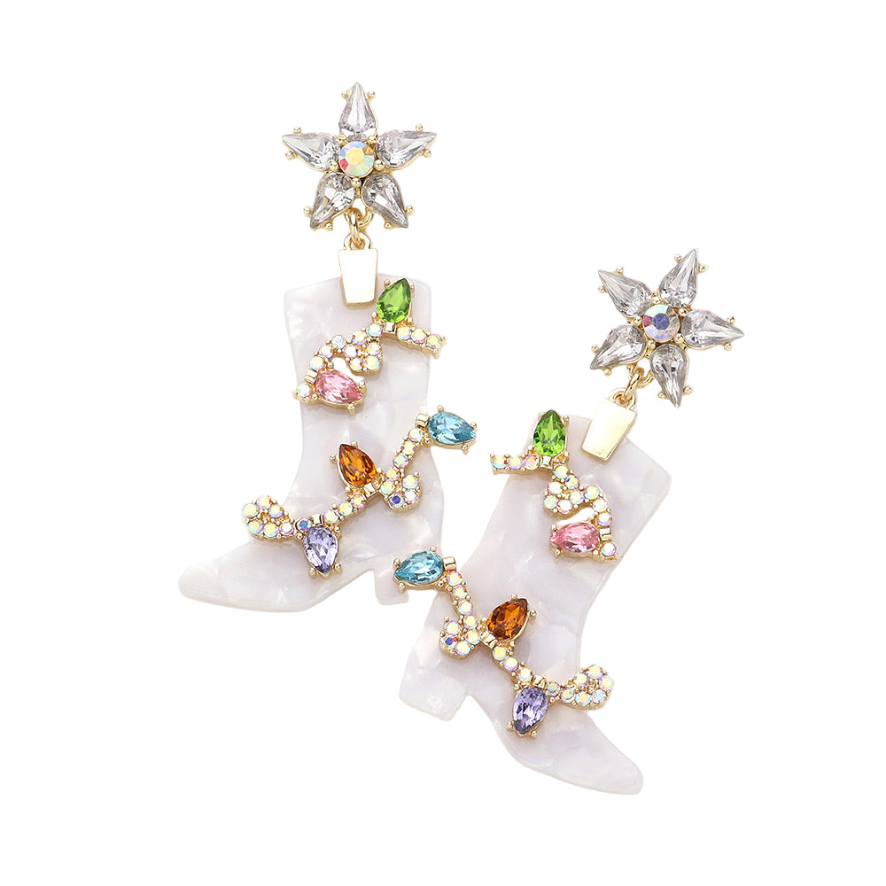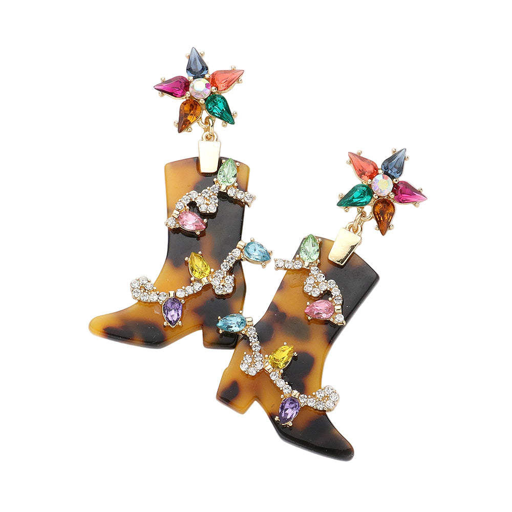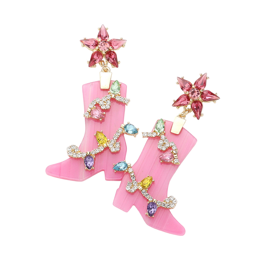 Add a fun, western-inspired touch to your look with these resin cowboy boot dangle earrings, adorned with sparkling stone embellishments. Lightweight and playful, they’re perfect for festivals, casual outings, or adding a unique statement to any outfit.
