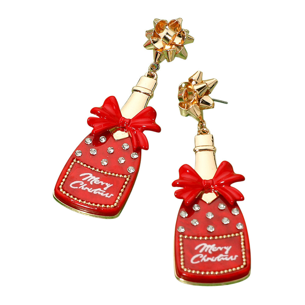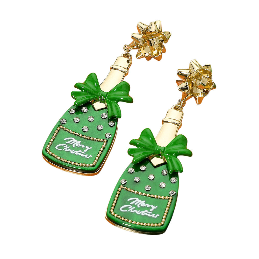 Celebrate the season with these Holiday Champagne Bottle Dangle Earrings in festive red or green. Fun and sparkling, they’re the perfect accessory for holiday parties and cheerful gatherings.