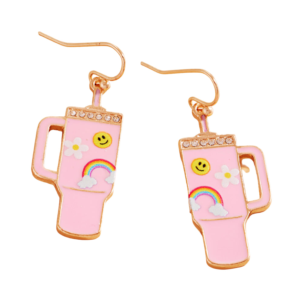 Bright and playful, these tumbler dangle earrings showcase a rainbow smile design in vibrant enamel. Perfect for adding a cheerful touch to your day.