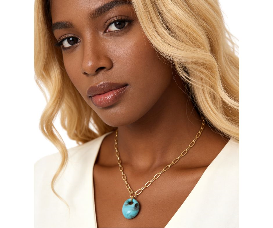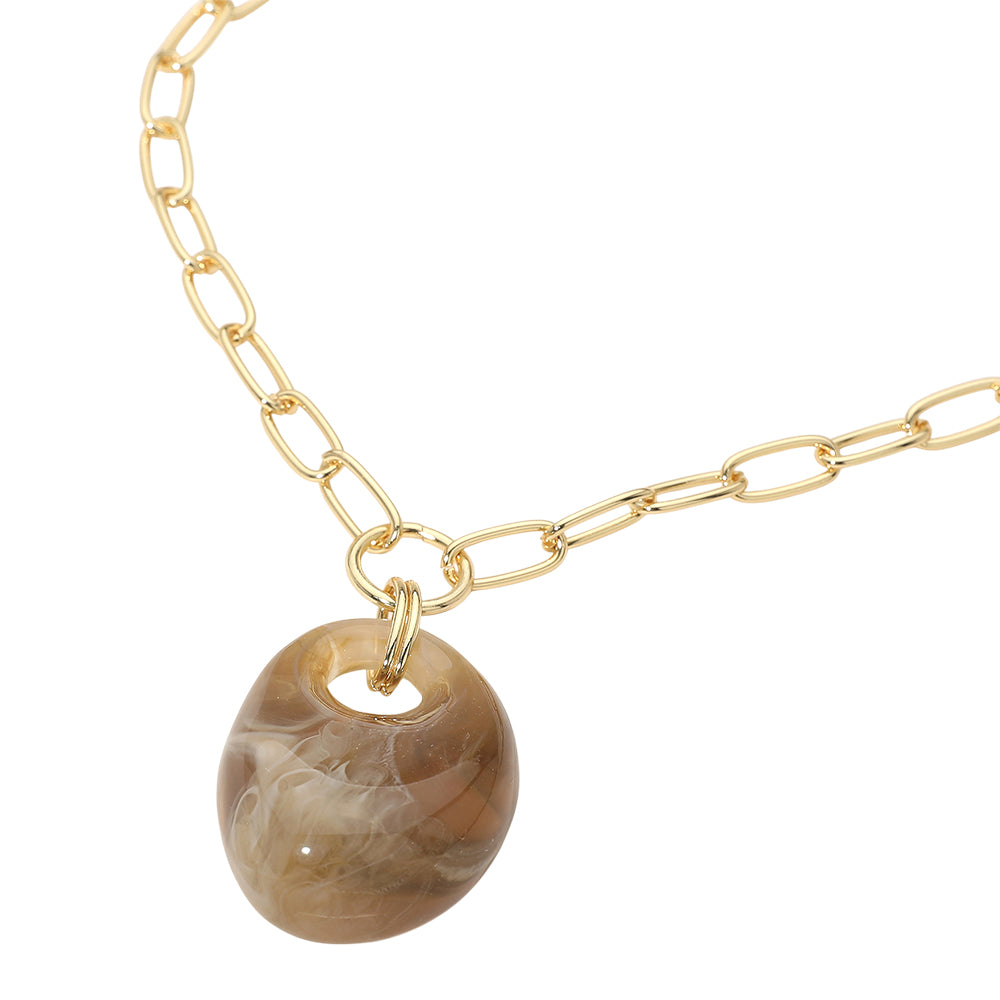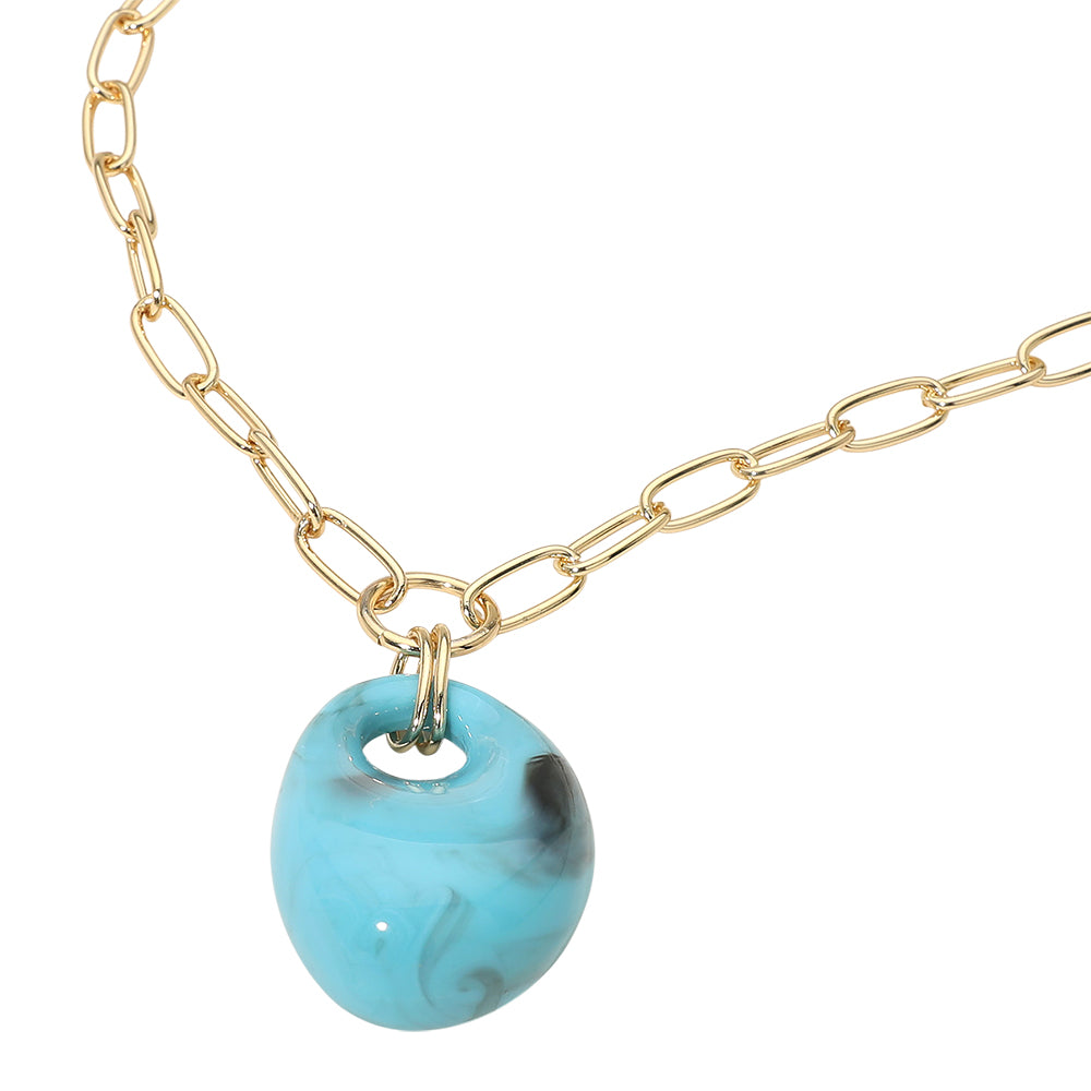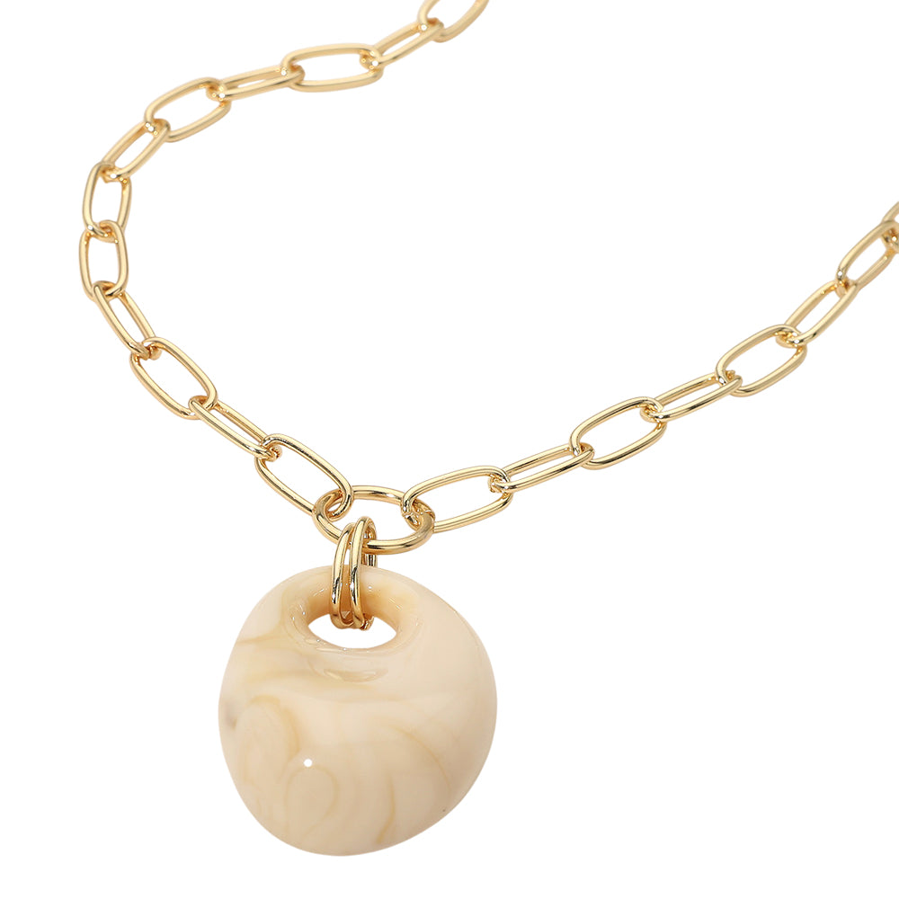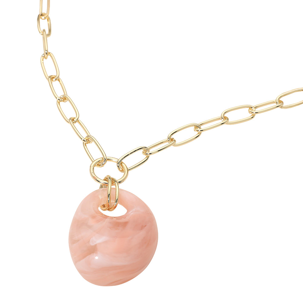 A modern necklace featuring a chunky marbled resin pendant suspended on a sleek paperclip chain. Lightweight yet bold, it adds a stylish, contemporary touch to everyday outfits or layered looks.
