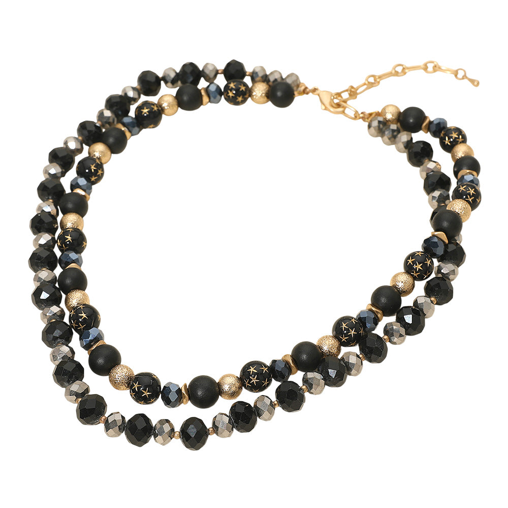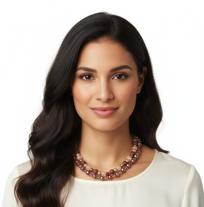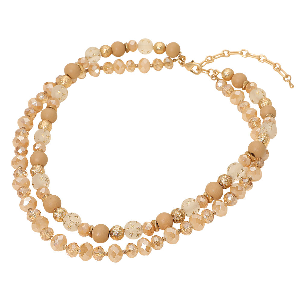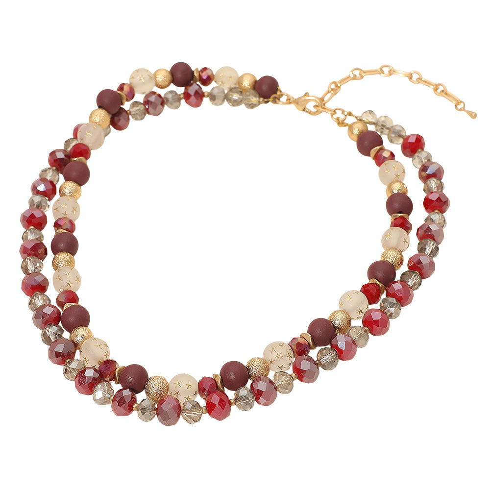 This stylish double-layered necklace features two complementary strands of smooth, colorful beads that create a soft, effortless layered look. Lightweight and easy to style, it adds a touch of charm to both casual and dressy outfits.