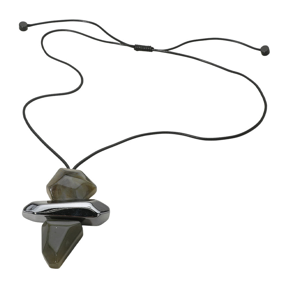 A sleek long necklace featuring a mesh chain design with a modern knot accent for a clean, contemporary look. Lightweight with an easy drape, it works beautifully as a statement piece or layered with shorter necklaces.