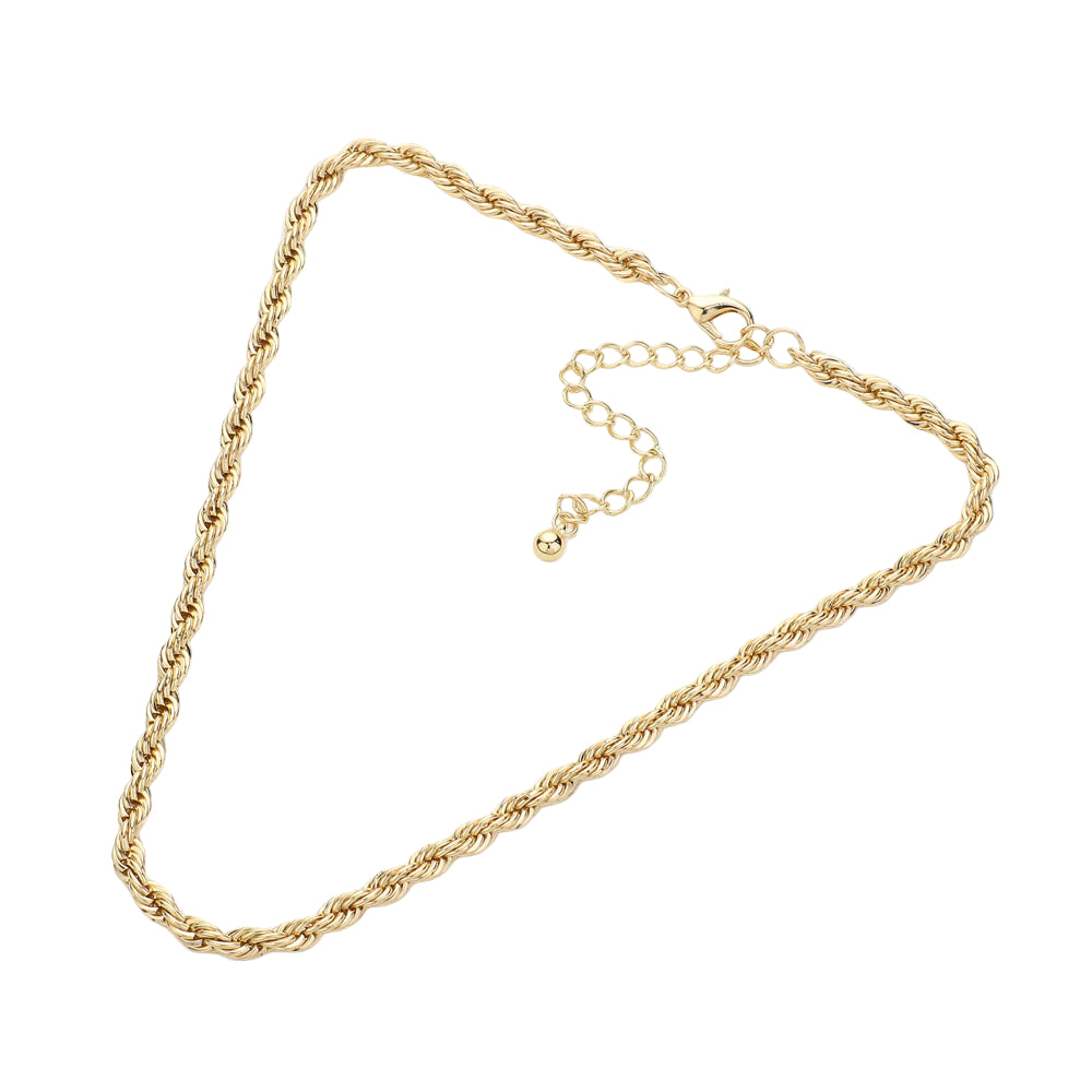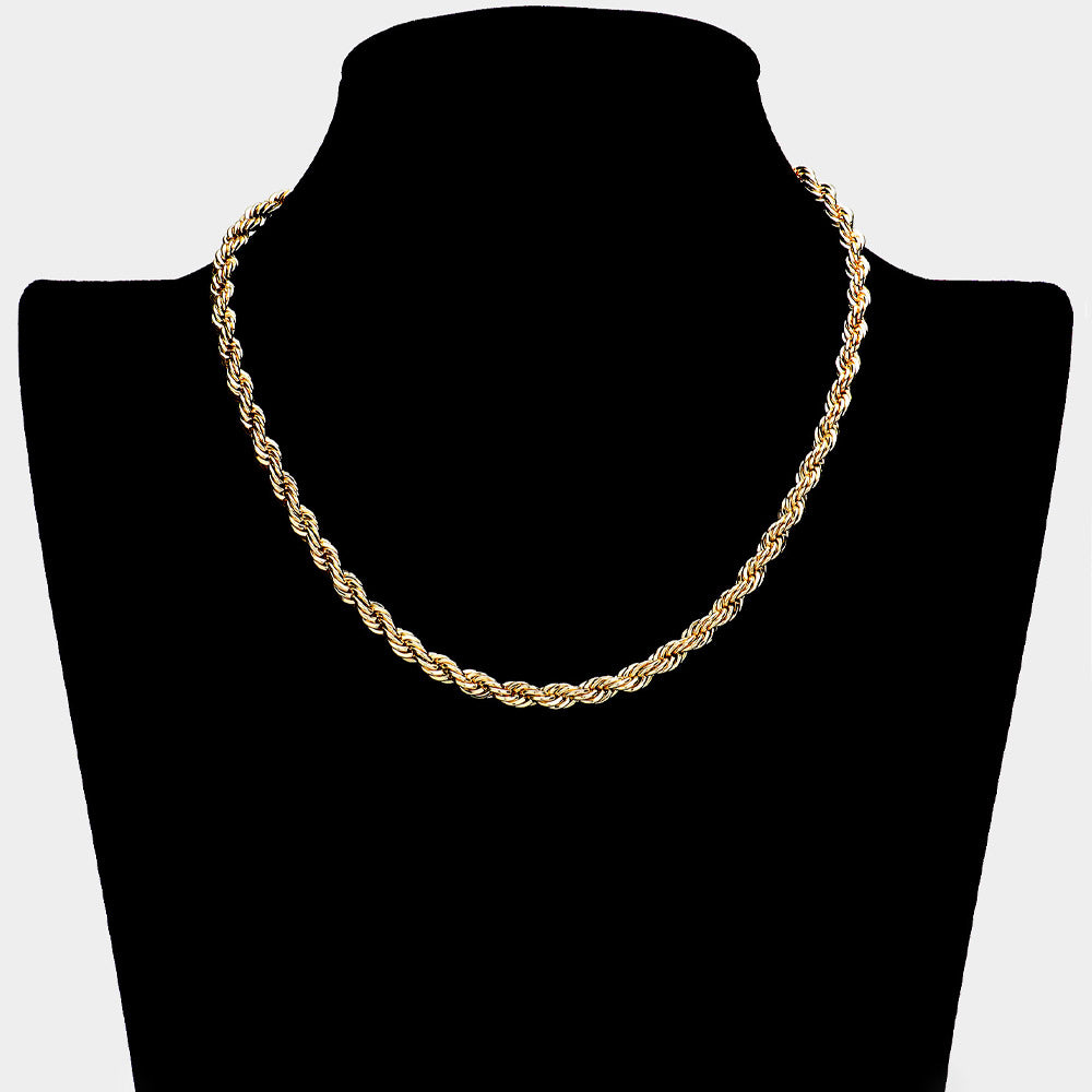 A classic rope-style metal chain with a smooth twist design that adds texture and shine. Lightweight and easy to pair with any look, whether worn alone or layered with other necklaces.