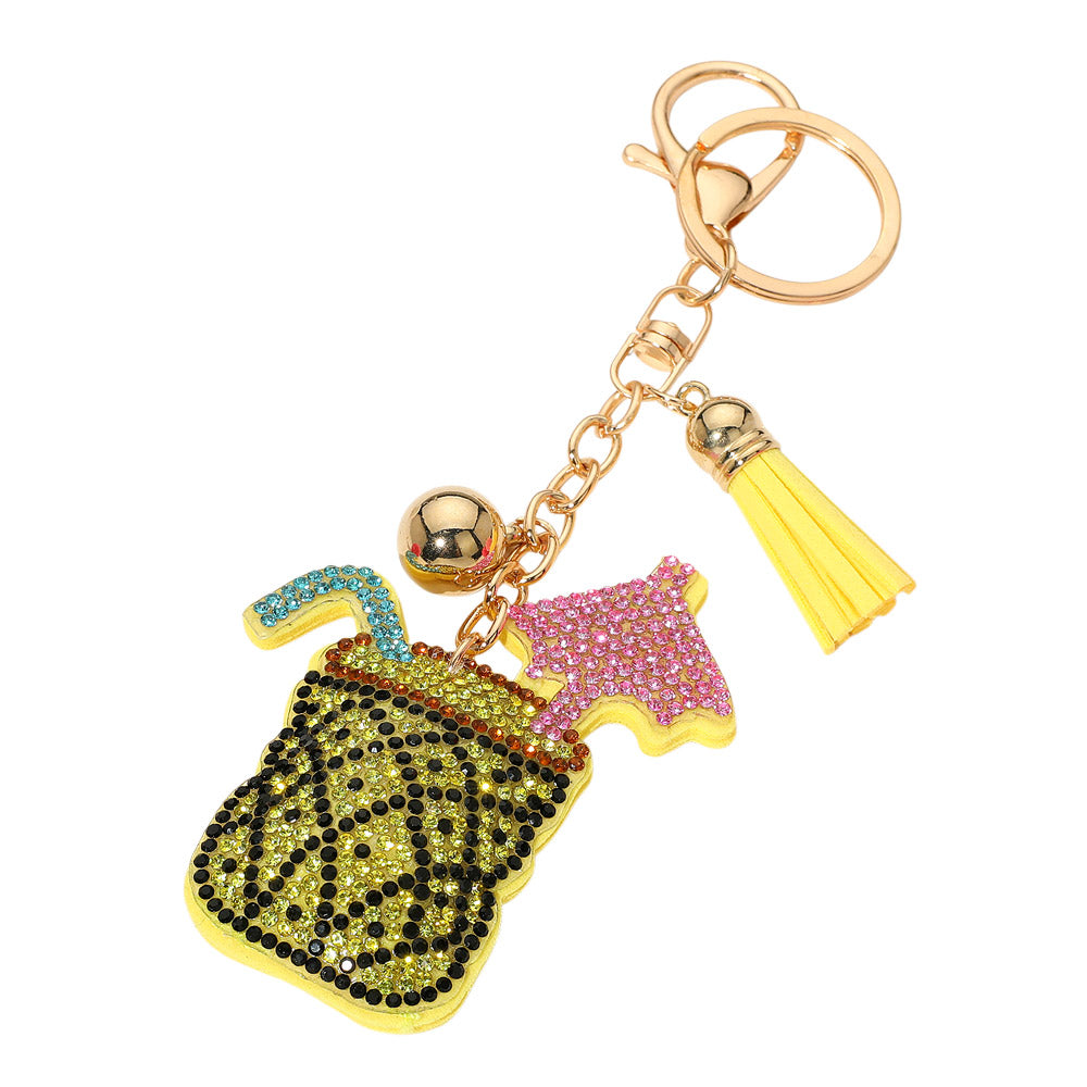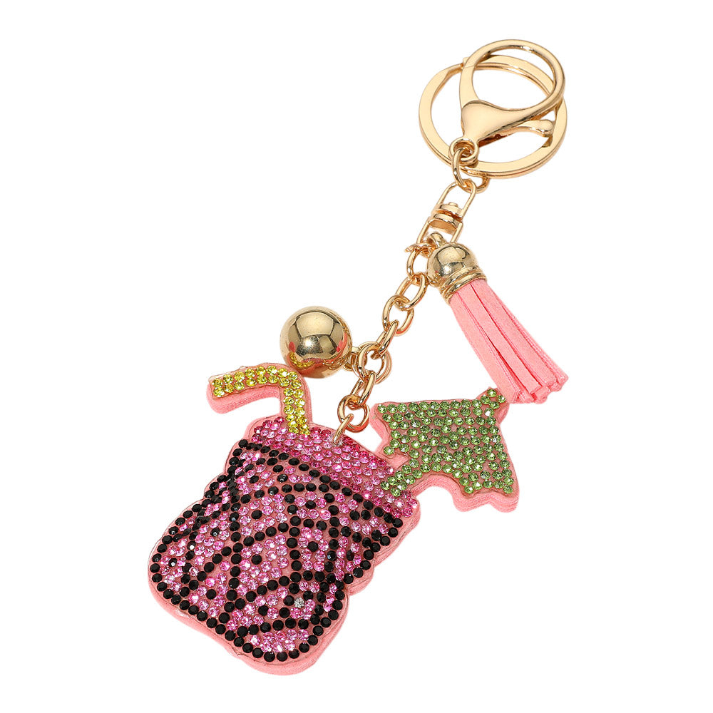Bring the vacation vibes wherever you go with this bling studded tropical drink keychain and bag charm. Covered in sparkling details and full of fun, it's the perfect accessory to clip onto your keys, tote, or beach bag for a playful pop of shine.