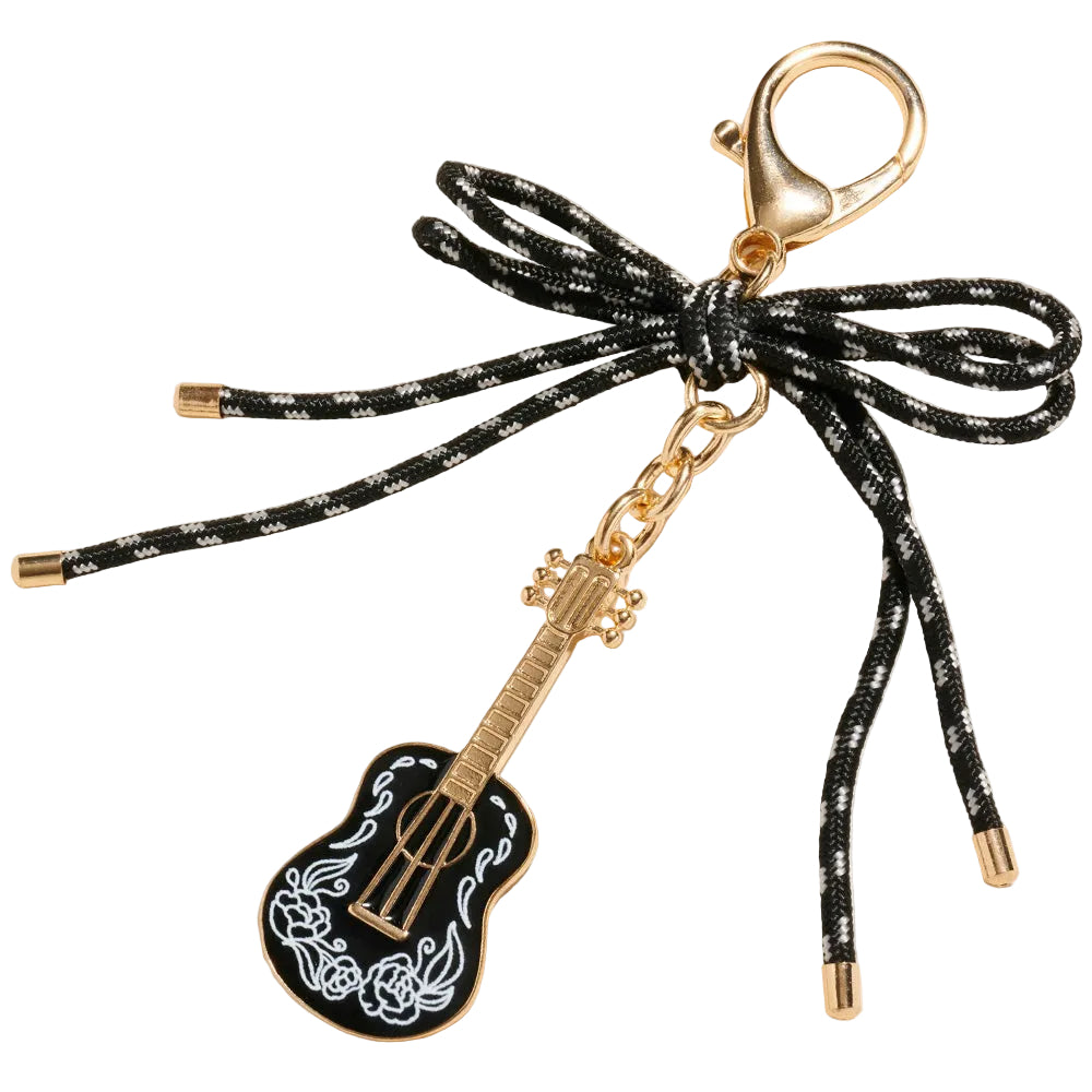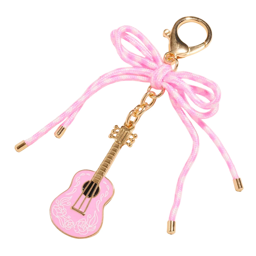 This decorative bow accent enamel guitar drop keychain bag charm adds a fun, playful touch with its detailed design and glossy enamel finish. Lightweight yet eye-catching, it’s easy to clip onto keys, handbags, or backpacks. A charming accessory that brings personality to your everyday essentials.