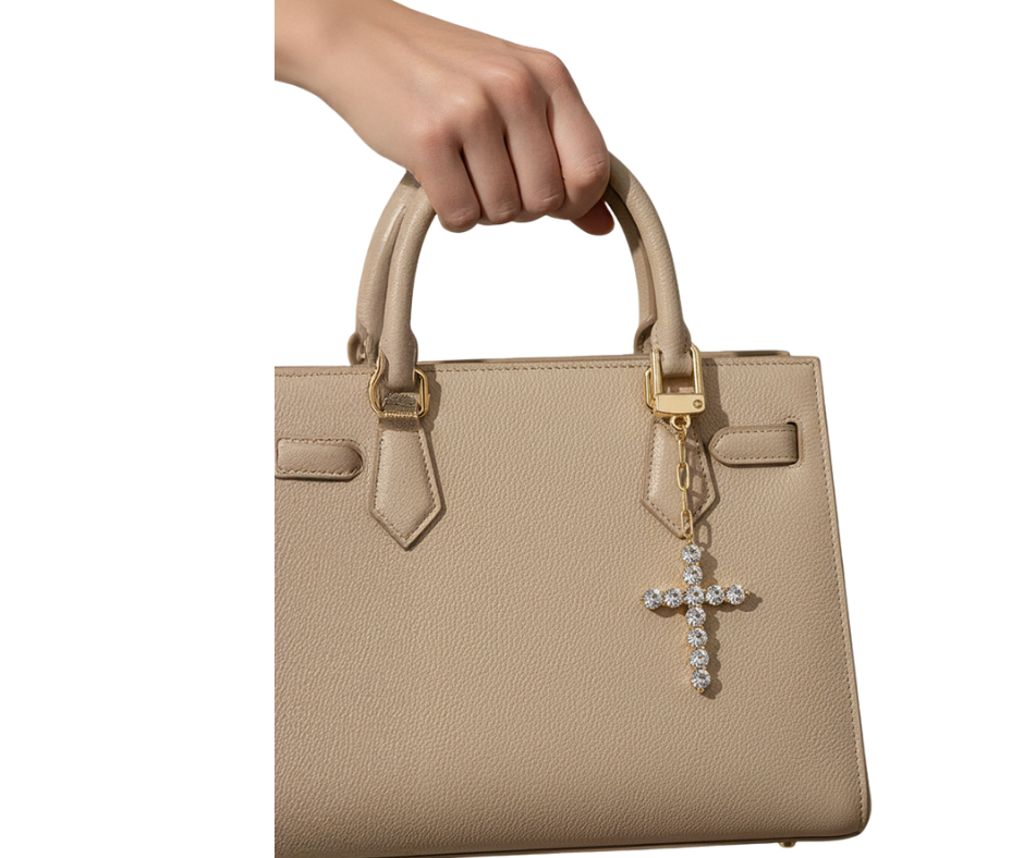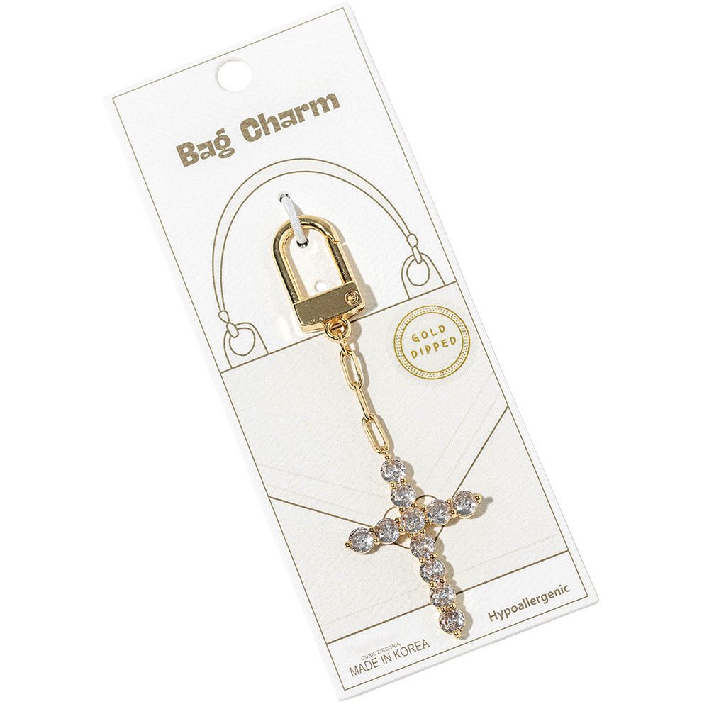 Add a touch of sparkle to your keys or favorite bag with this gold dipped keychain charm, featuring a cubic zirconia studded cross drop. Also available in white gold dipped, it’s a stylish accessory that’s perfect for everyday use or gifting.