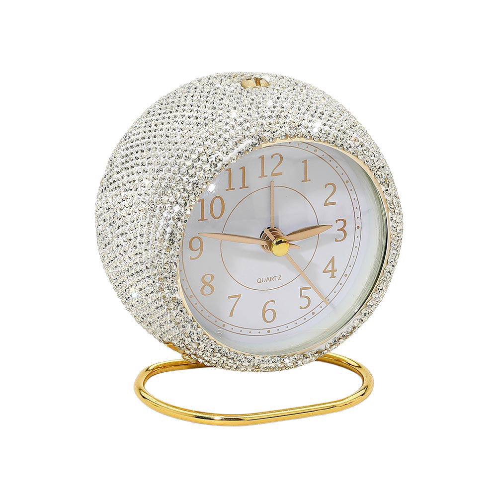 Add sparkle to any room with this bling rhinestone studded quartz table clock. Stylish and functional, it features a glowing backlight and shimmering rhinestone accents—perfect for desks, vanities, or nightstands. A chic way to keep time with a touch of shine.