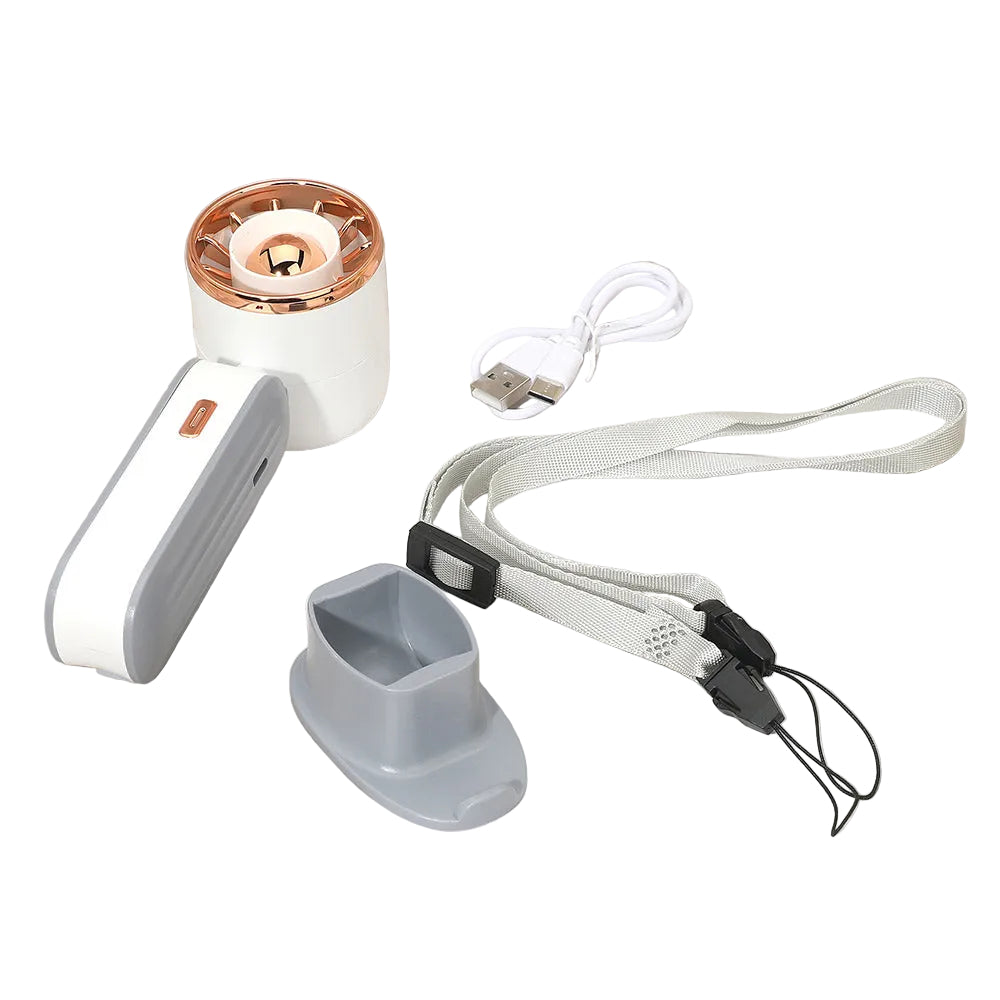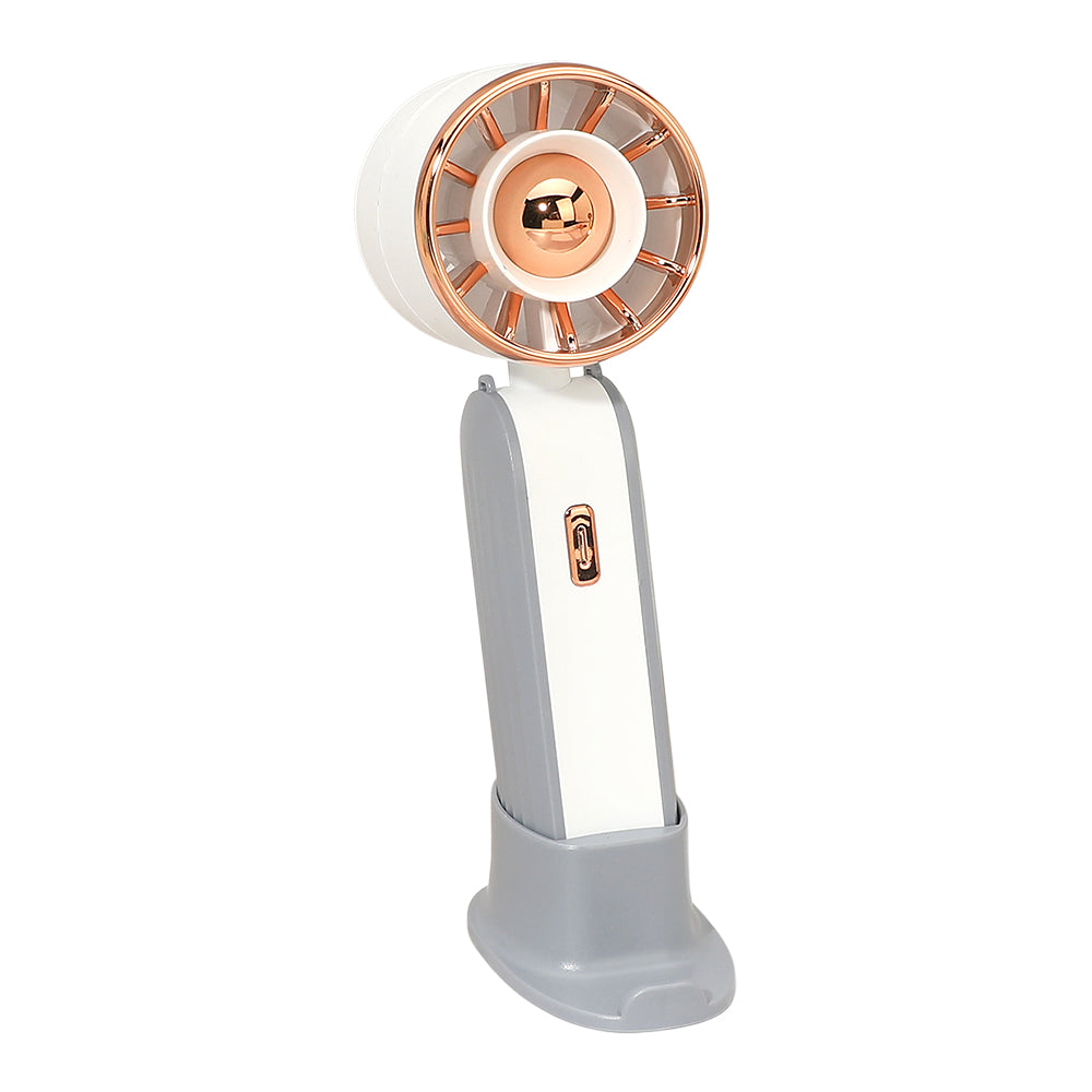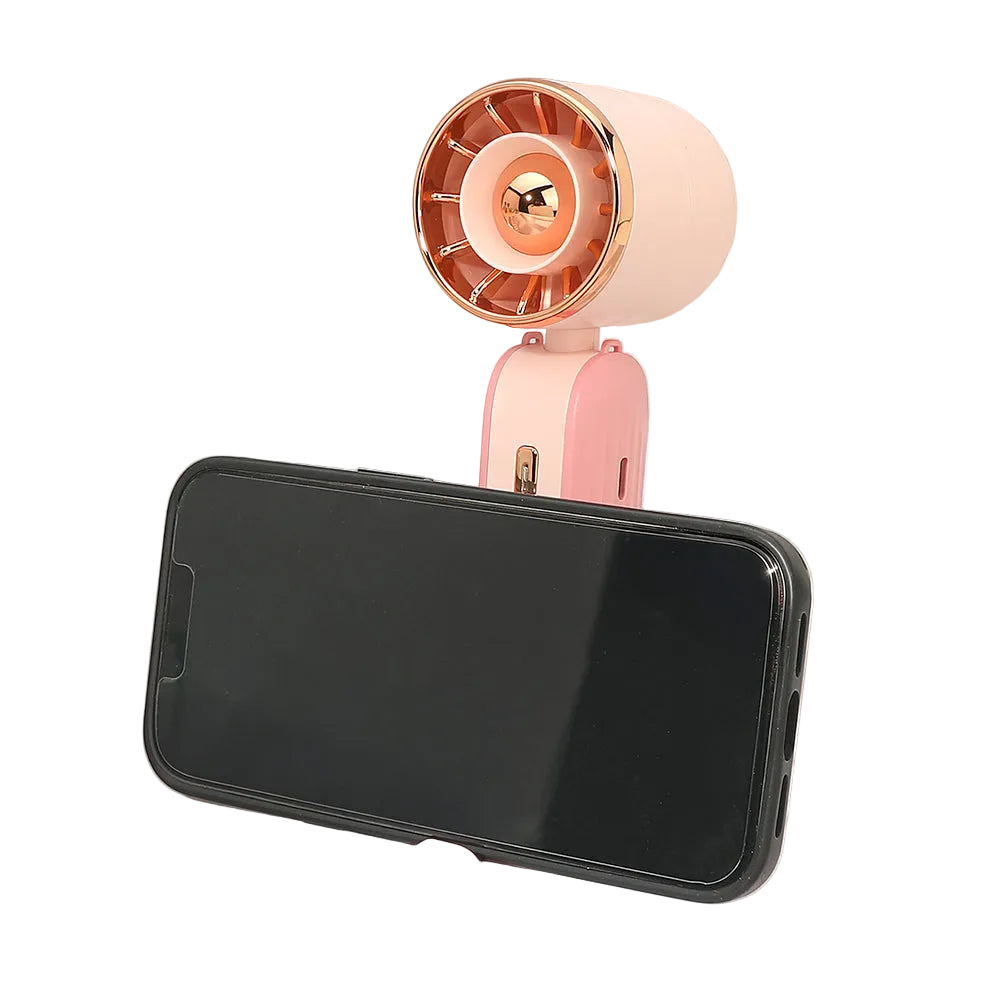 This portable handheld mini fan doubles as a phone stand and features built-in LED lights for added functionality. Compact and lightweight, perfect for on-the-go use at home, work, or outdoor activities. USB charging cable included for convenient, hassle-free power.
