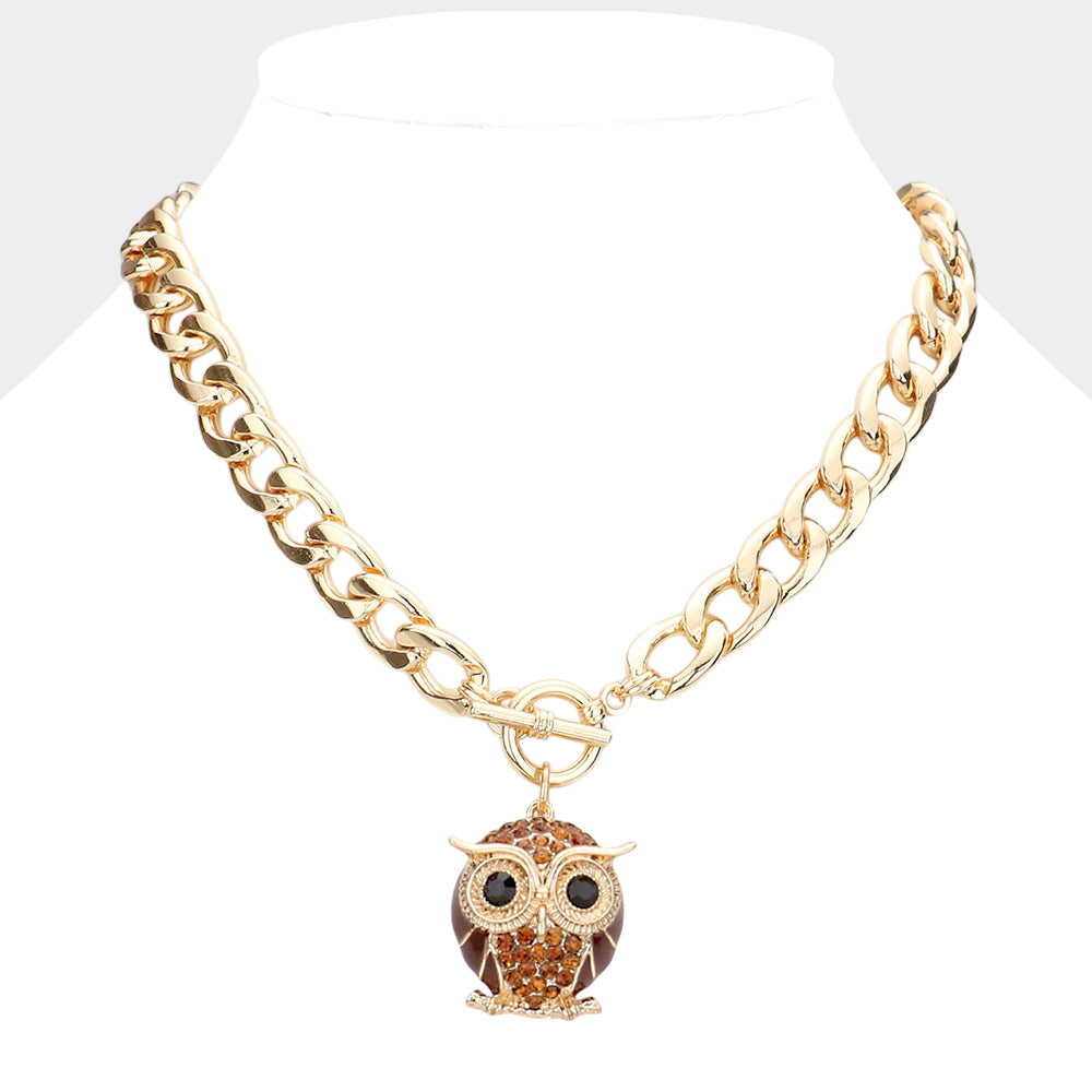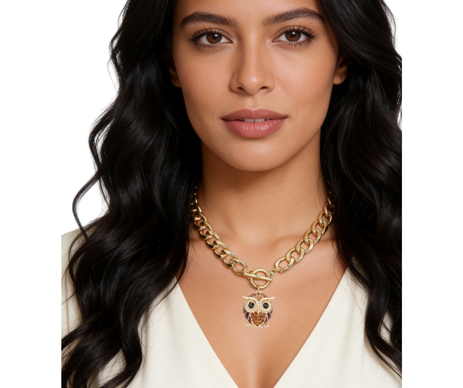 This toggle necklace features a charming owl pendant accented with sparkling stone embellishments. The detailed design adds just the right amount of shine while keeping the look playful and eye-catching. An easy statement piece you’ll reach for when you want something a little different.