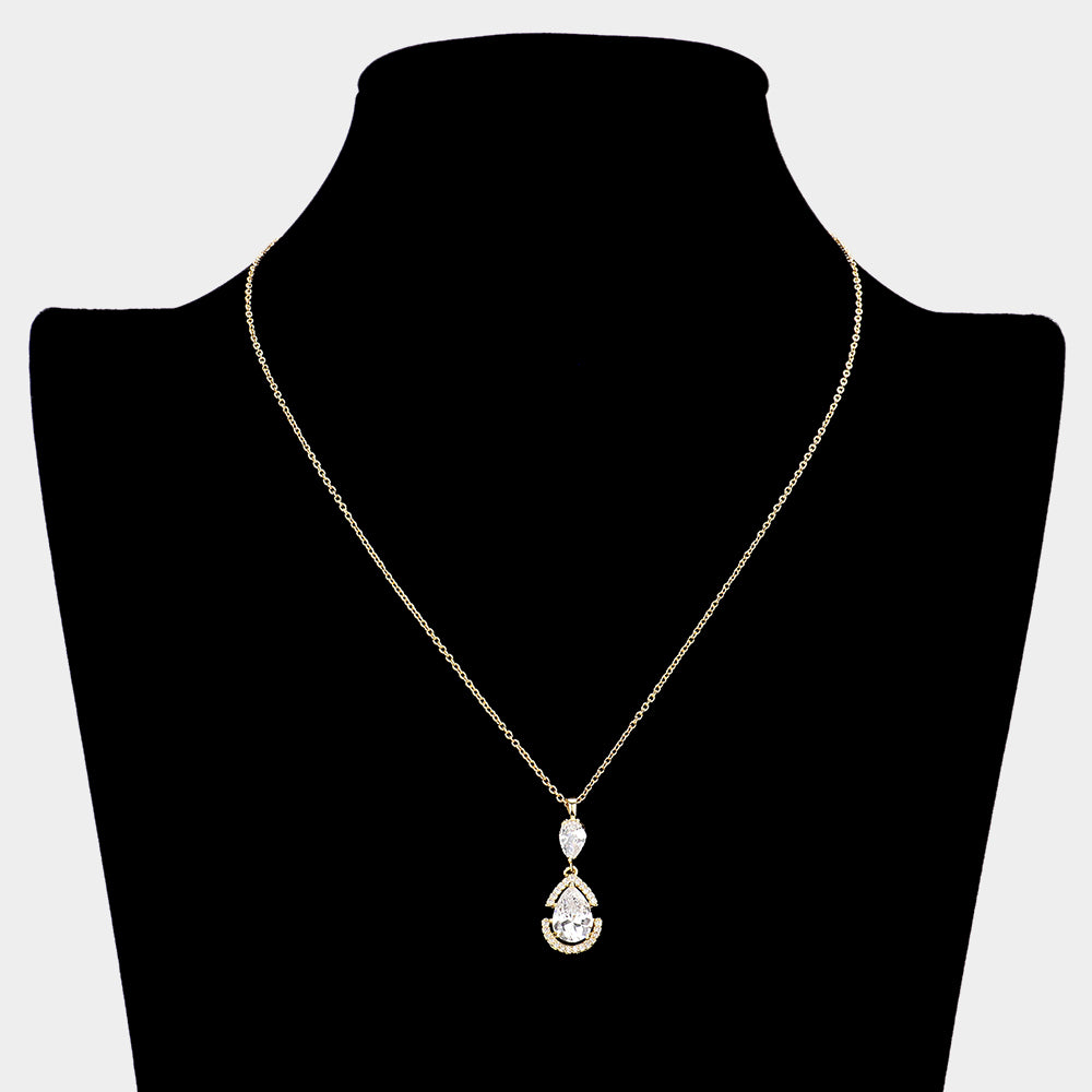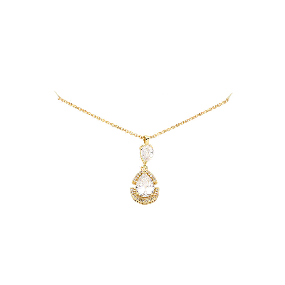 Add a touch of elegance with this 18K gold filled necklace featuring a sparkling teardrop-shaped cubic zirconia pendant. Its sleek, polished design catches the light beautifully, making it perfect for both everyday wear and special occasions. A timeless piece that complements any outfit.