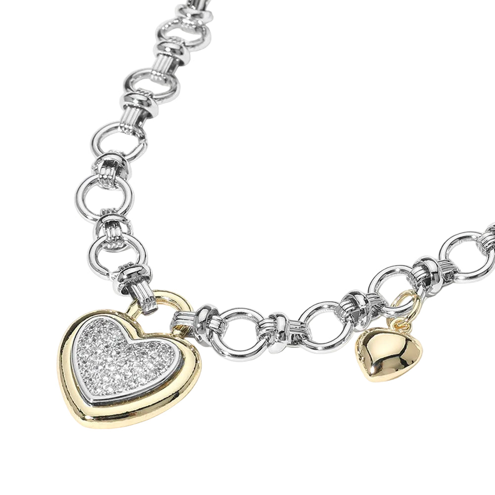 This two-tone necklace features a cubic zirconia pave heart charm on a circle link chain with a stylish toggle closure. A sweet statement piece that adds just the right amount of shine to your everyday look.