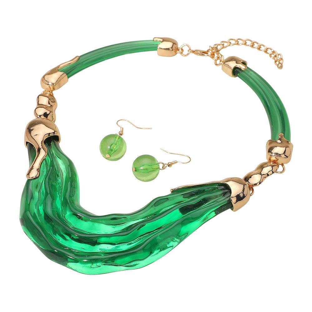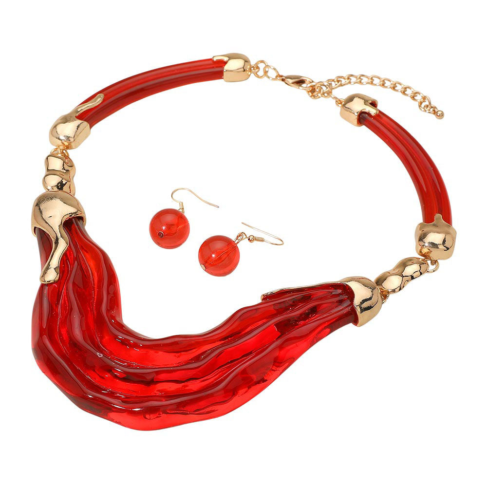 A bold statement necklace set featuring abstract resin plates paired with coordinating earrings. Lightweight, eye-catching, and perfect for adding a standout touch to your look.