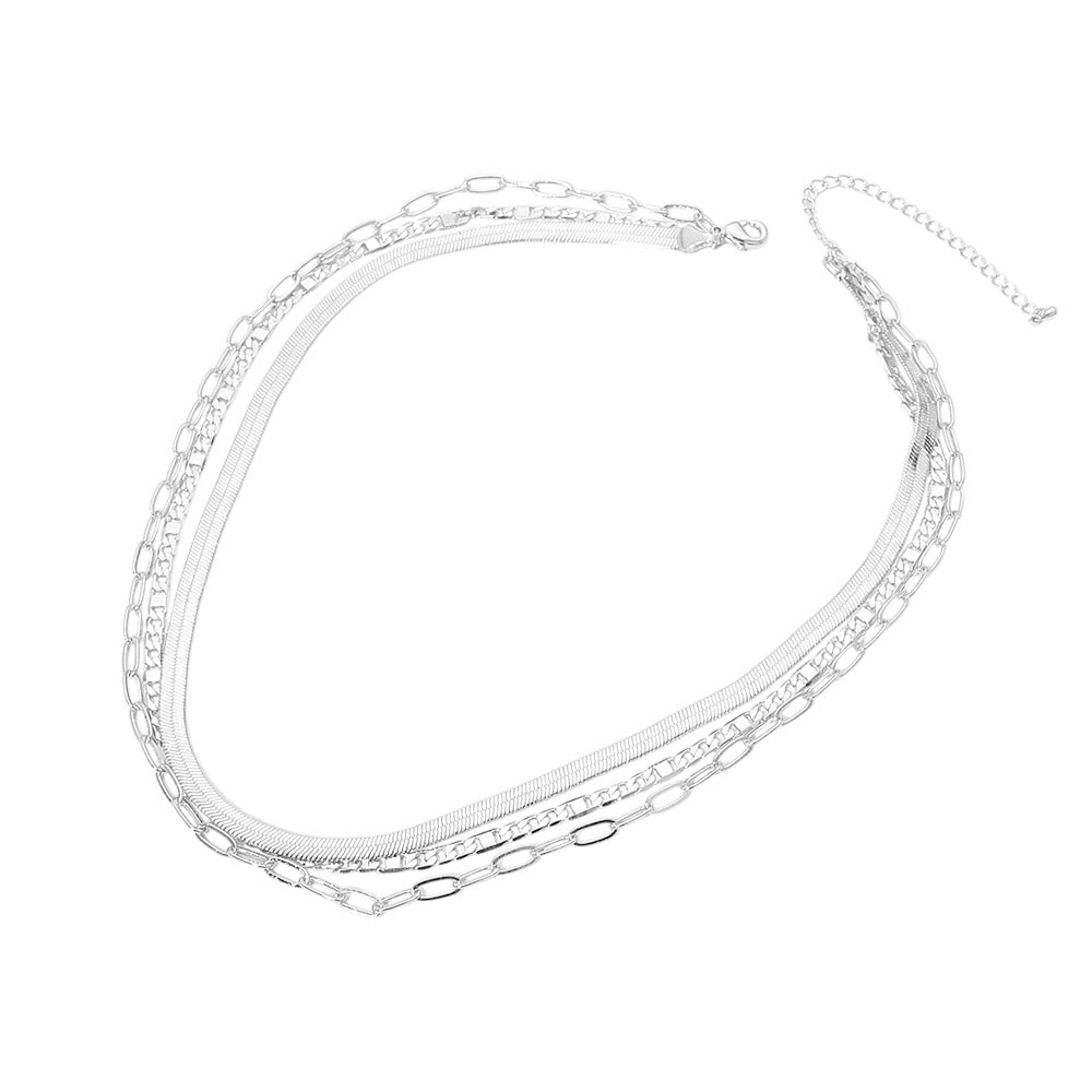 Sleek and modern, this 18K gold dipped layered necklace combines a herringbone chain with a paperclip chain for a clean, textured look. The mixed chain design creates natural dimension while keeping the style polished and versatile. Perfect for everyday wear or pairing with both casual and dressy outfits, this piece adds smooth shine and contemporary detail.