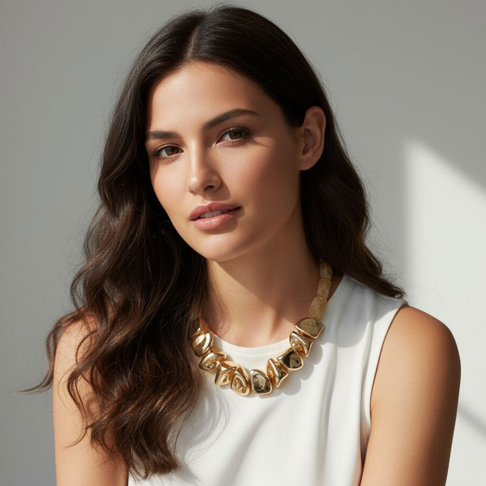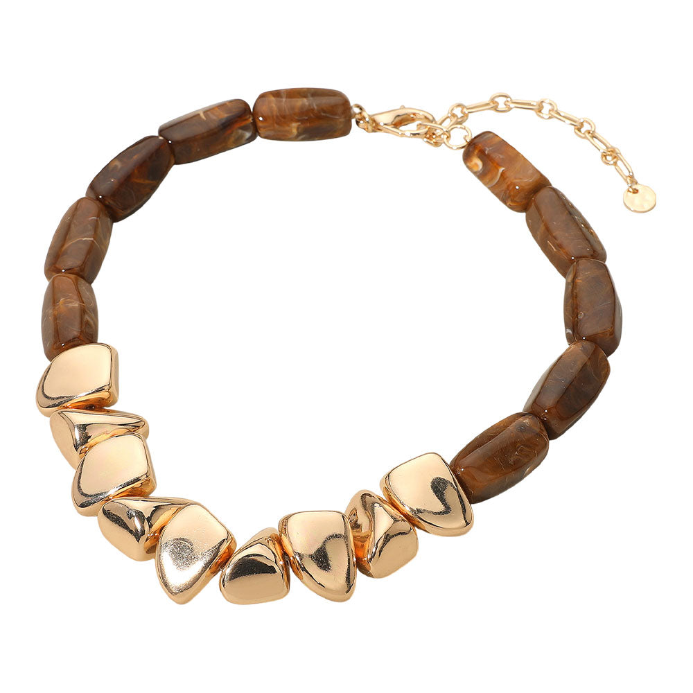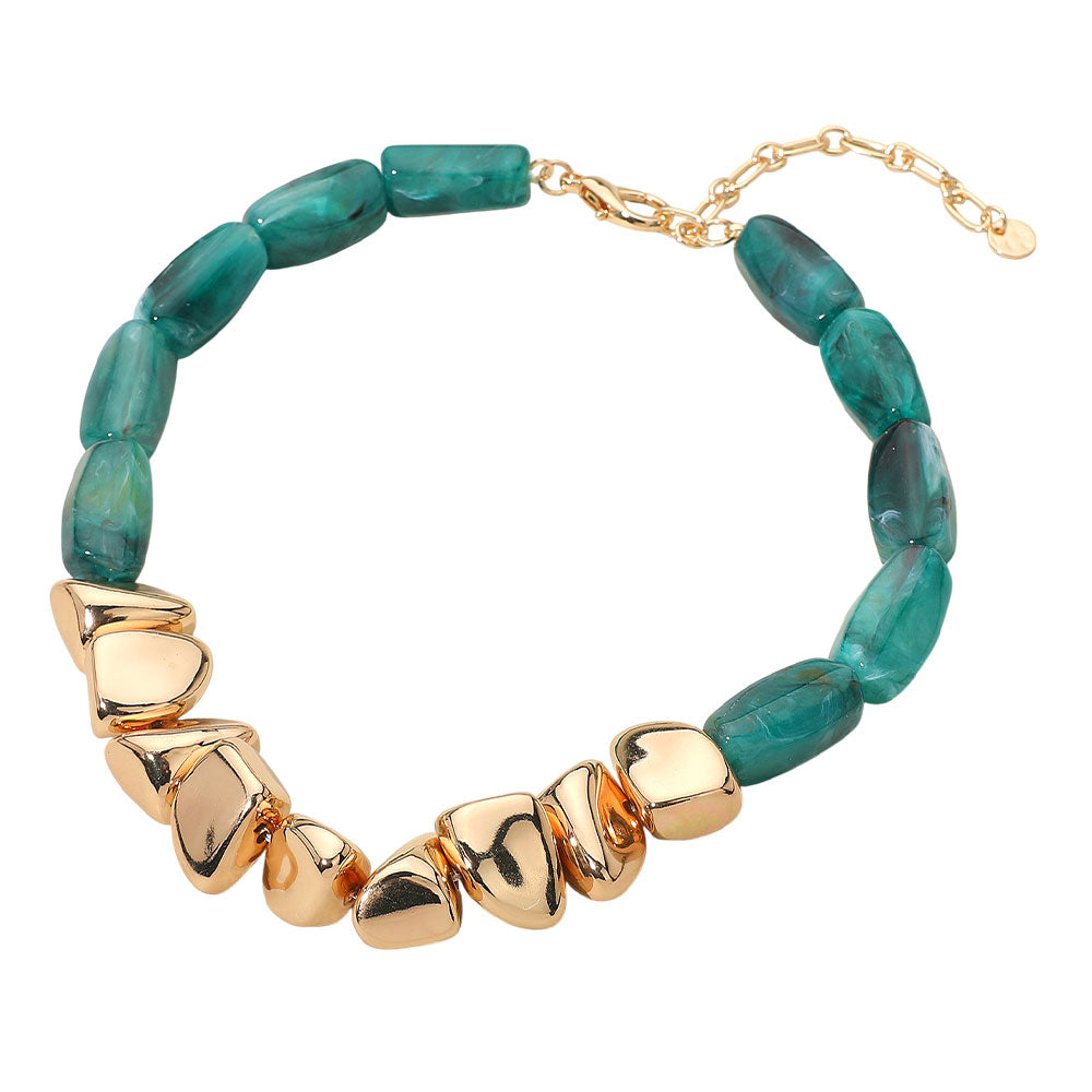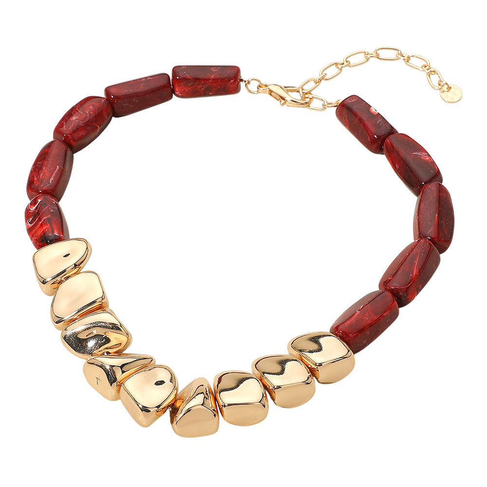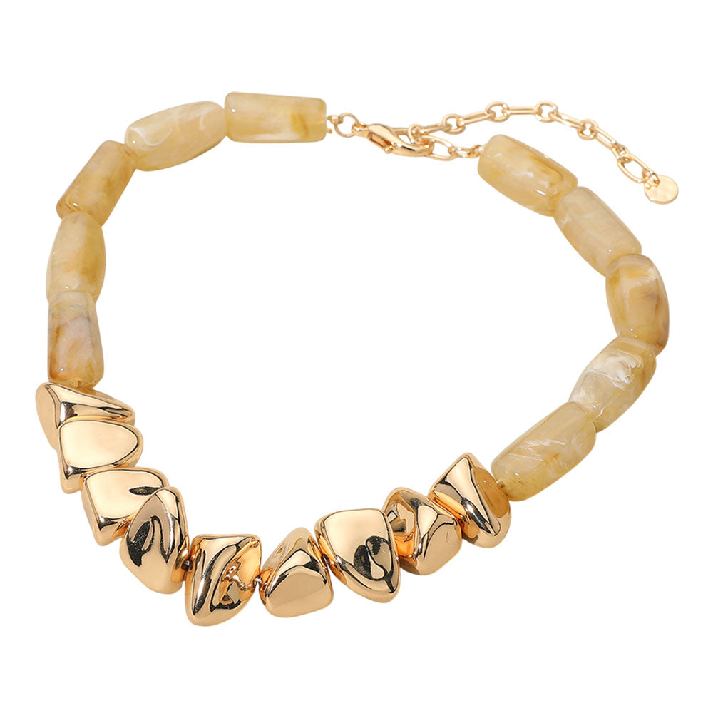 Bold and eye-catching, this statement necklace features marbled resin pebble beads accented with polished metal details. The chunky design adds a modern artistic flair, perfect for making any outfit stand out.