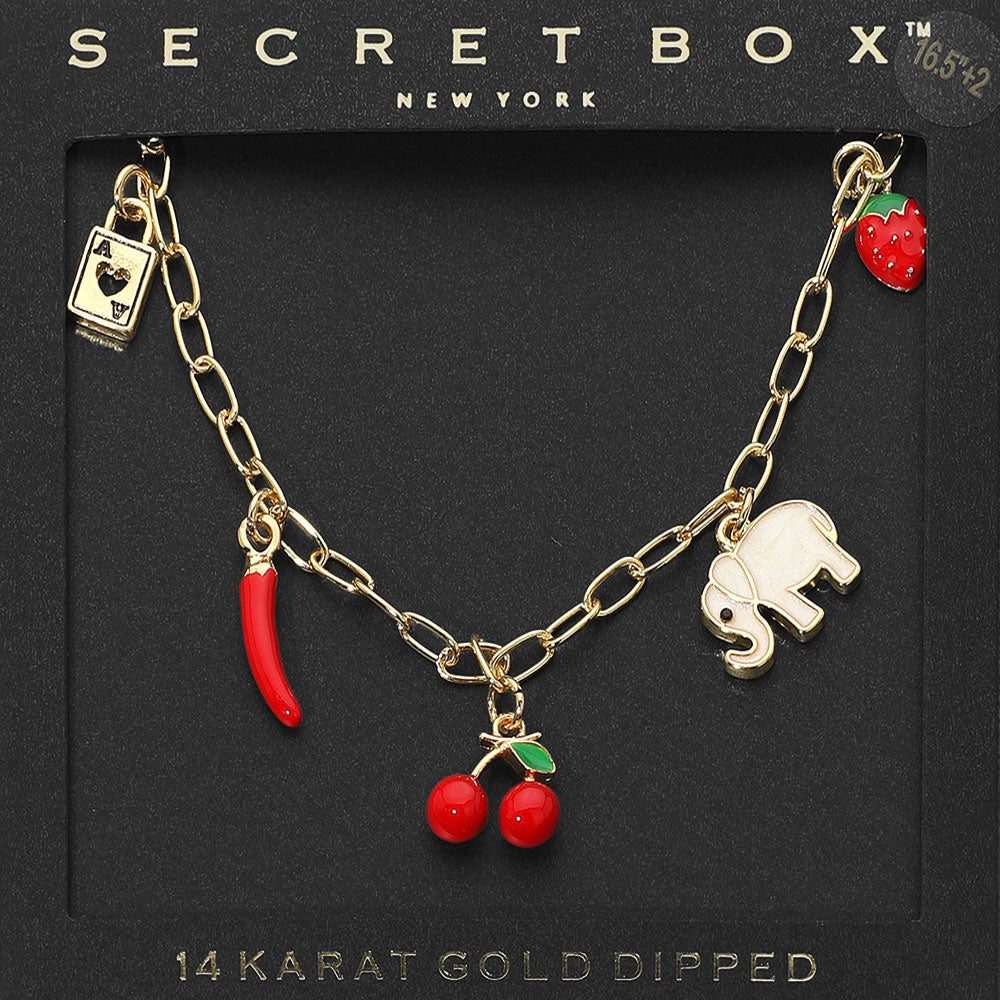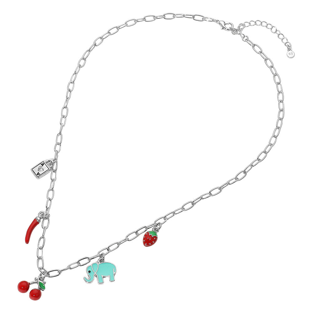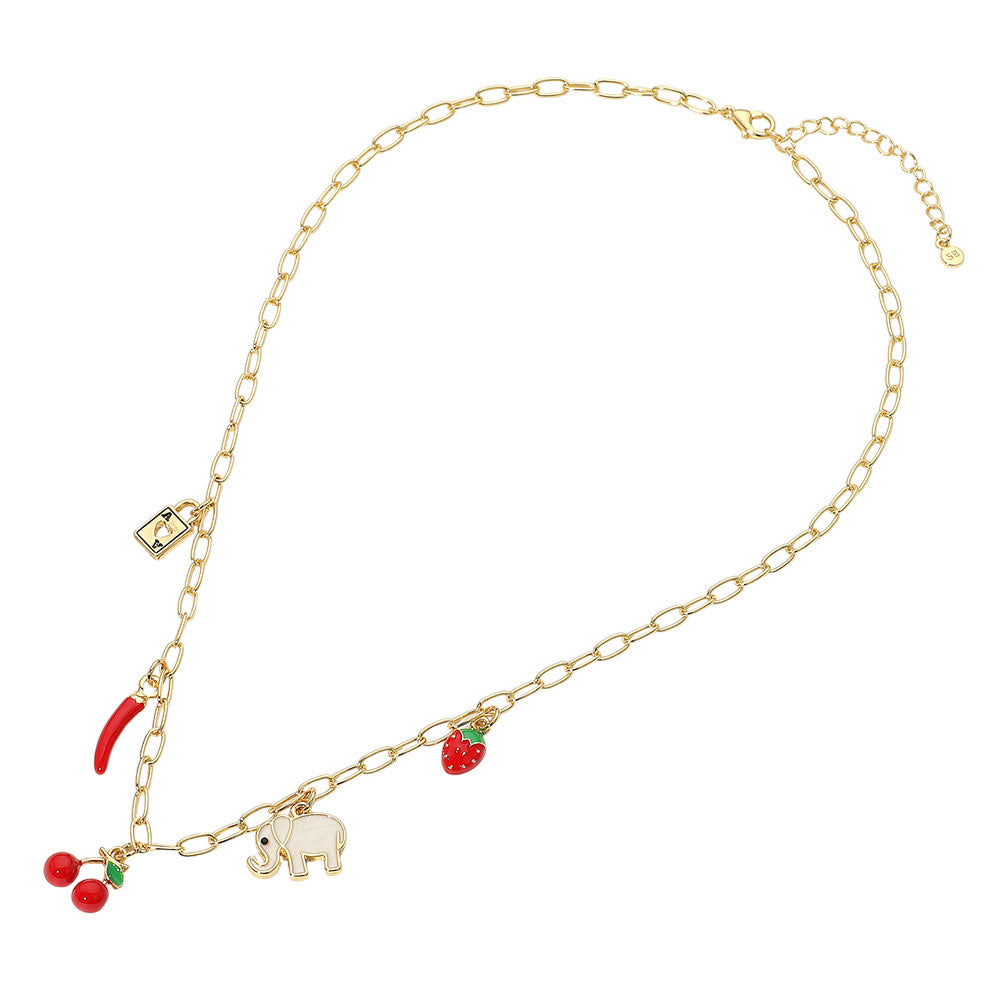 Each pendant features charming enamel details and sparkly stone accents, making this necklace a sweet and playful accessory with a touch of sparkle and personality.
